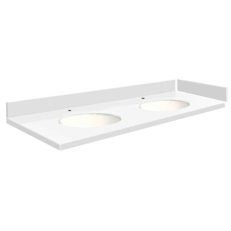 • SMVT49-60.75x22-2MU-C01 Mini Custom Quartz 49-60.75-in x 22-in Vanity Top with Millwood Double Bowls, Mia White Mia White