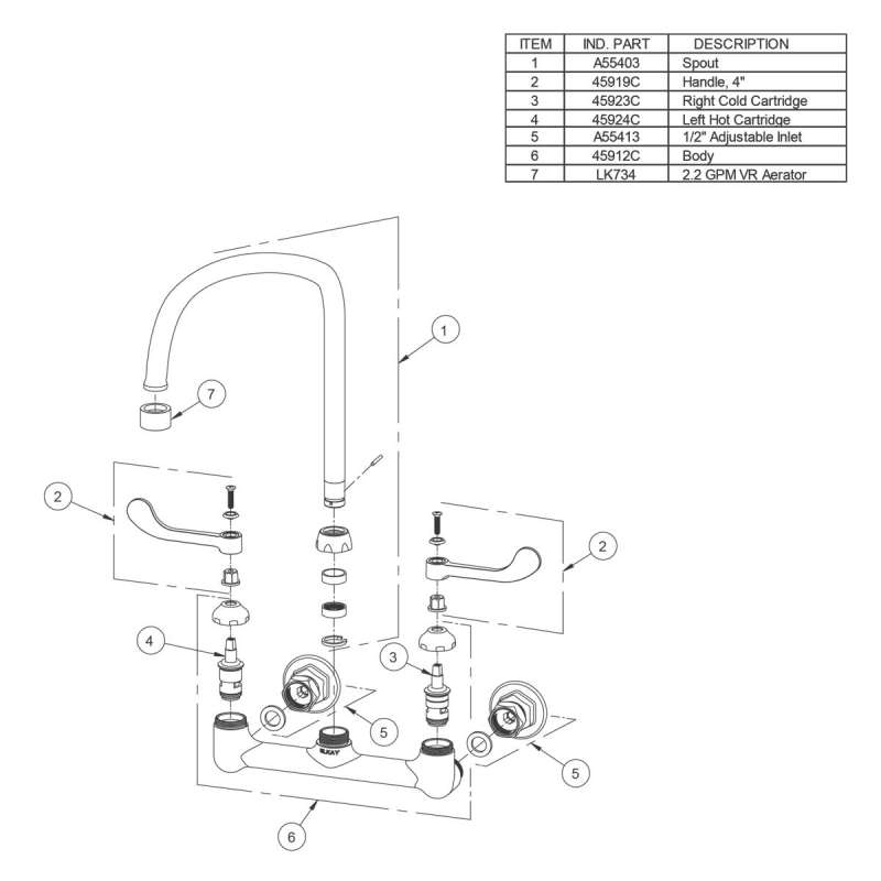 | Features Faucets | 1/2" Adjustable Inlets;Low Flow;Solid Brass Construction;Spout Swing Restriction Pin |