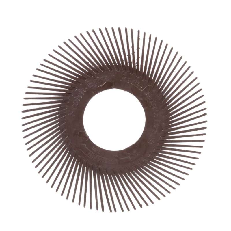 Scotch-Brite™ Radial Bristle Brush Replacement Discs can be used to refill or expand the width of our Scotch-Brite™ Radial Bristle Brush (brush adapter sold separately). The molded, flexible bristles are filled with proprietary 3M™ Ceramic Abrasive Grain blend and provide a high quality finish with minimal pressure. Use the brush to effectively clean, finish, polish and deburr irregular surfaces. Replace Wire Brushes, Use Less Pressure Scotch-Brite™ Radial Bristle Brush Replacement Discs provide more surface contact than wire brushes and maintain abrasiveness throughout the life of the brush. Moreover, the Scotch-Brite™ Radial Bristle Brush provides a safer alternative to wire brushes by eliminating the risk of flying wires being ejected from the brush. Under normal use, the flexible bristles remain safely in place and can achieve the desired finish using light pressure. Applications Bristle brush discs feature firm yet flexible bristles that produce uniform finishes around protrusions, detail grooves, patterns and other hard-to-reach areas. They conveniently remove paint, stains, adhesives, weld burns, rust, heavy oxides, and surface contaminants. The discs work well on aluminum, brass, bronze, carbon steel, cast iron, stainless steel, and other metals. Applications include general industrial, aerospace, automotive, metalworking and transportation as well as fine detailing requirements of electronics, jewelry and woodworking industries. High Cut-Rate and Excellent Durability 3M™ Ceramic Abrasive Grain is a ceramic mineral manufactured using one of our proprietary processes to enhance toughness and hardness of the grain. For increased performance, Scotch-Brite™ Radial Bristle Brush Replacement Discs feature aluminum oxide blended with ceramic abrasive grain for one of the hardest, longest-lasting minerals available. 3M™ Ceramic Abrasive Grain surpasses aluminum oxide abrasives in cut-rate, durability, and makes an excellent choice for industrial grinding and finishing applications. Scotch-Brite™ industrial abrasives are unique surface conditioning products designed to deliver quality, consistent results for the life of the product. Choose from a range of sizes and grits to suit unique project requirements.
