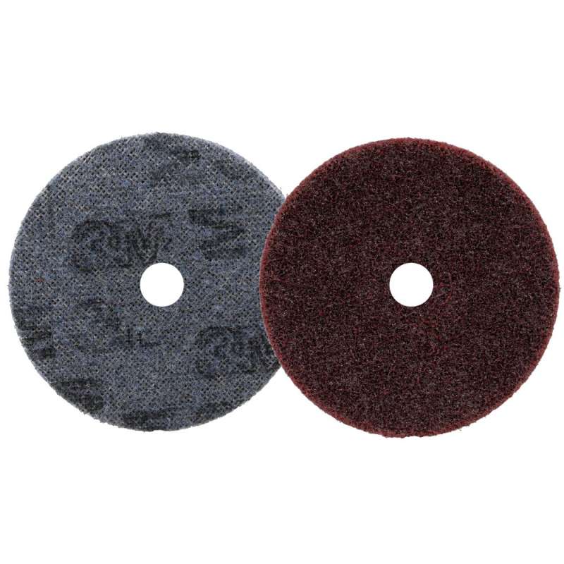 Scotch-Brite™ SE Surface Conditioning Disc combines an aggressive, non-woven disc to perform heavy-duty deburring and finishing with the efficiency of a hook and loop attachment system. Its heavy-duty non-woven fiber construction conforms well to help preserve edges as well as irregular or contoured surfaces. 3M™ Scotch-Brite™ SE Surface Conditioning Disc performs heavy duty blending, refining, finishing, deburring and radiusing with the efficiency of a hook and loop attachment system. These discs provide an extra cut and long life, while the durable web construction offers a resilient disc edge, helping to reduce tearing when pushed against corners and welds. The aluminum oxide material provides the discs with a high cut rate, and is suitable for use on a variety of substrates in professional metalwork applications, including ferrous alloys. The hook and loop attachment system makes disc change outs quick and easy. Use 3M™ Scotch-Brite™ SE Surface Conditioning Disc to quickly complete multi step finishing processes.