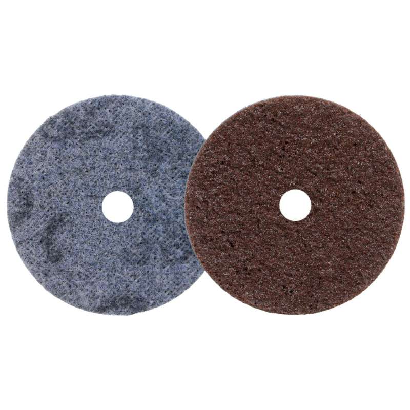 Scotch-Brite™ SE Surface Conditioning Disc combines an aggressive, non-woven disc to perform heavy-duty deburring and finishing with the efficiency of a hook and loop attachment system. Its heavy-duty non-woven fiber construction conforms well to help preserve edges as well as irregular or contoured surfaces. 3M™ Scotch-Brite™ SE Surface Conditioning Disc performs heavy duty blending, grinding, refining and deburring with the efficiency of a hook and loop attachment system. These discs provide an extra cut and long life, while the durable web construction offers a resilient disc edge, helping to reduce tearing when pushed against corners and welds. The aluminum oxide material provides the discs with a high cut rate, and is suitable for use on a variety of substrates in professional metalwork applications, including ferrous alloys. The hook and loop attachment system makes disc change outs quick and easy. Use 3M™ Scotch-Brite™ SE Surface Conditioning Disc to quickly complete multi step finishing processes.