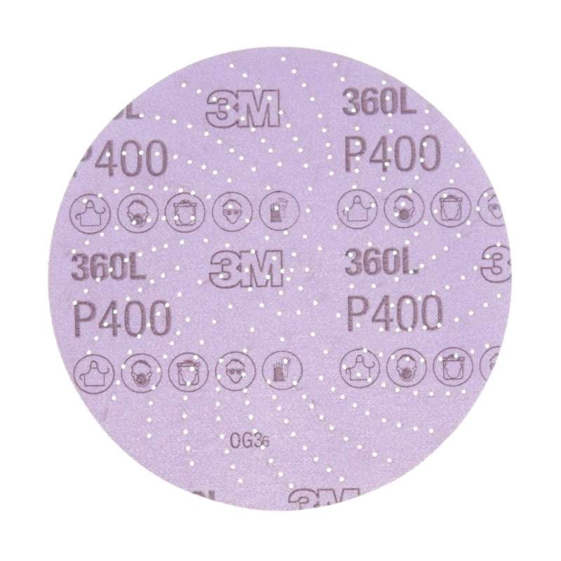 3M Xtract™ Film Disc 360L offers the latest innovation in dust evacuation. Multi-hole patterns evacuate dust better than 5- or 6-hole products—significantly increasing cut-rate and disc life. The new design does not need to align with the disc pad holes, making switching the discs fast, easy, and convenient. The 3M™ Hookit™ attachment system provides excellent backing support and further simplifies disc changes, optimizing disc life, while the film backing provides a consistent finish. The purple aluminum oxide disc comes in a variety of sizes and is available in a range of grades. Sandpaper discs cut better and last longer when dust isn't loading the cutting surface of the abrasives. Reducing dust is easier than ever with 3M™ clean sanding discs. An open coat means the abrasive grains have space between them so that sanding debris collects in the spaces rather than loading the cutting edge of the grains. The load resistant coating allows the disc to continue cutting even when sanding softwoods, paints, and other materials that would, otherwise, clog the disc and hinder sanding ability.