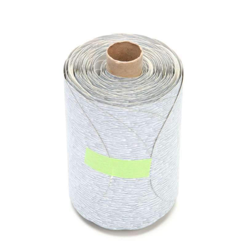 3M™ Stikit™ Paper Disc Roll 426U are multiple sanding discs packaged in a roll for convenience and use in high-production environments and ideal for white wood sanding, sealer sanding, solid surface or where fine finish is critical. The disc itself features silicon carbide abrasive with a load-resistant coating and open coat abrasives that work together to minimize loading. The 426U features a silicon carbide abrasive, which is fast cutting, creates a smoother finish than aluminum oxide or garnet abrasives, and is effective for finishing on hard woods and solid surfaces. Constructed with A-weight, light paper and a pressure sensitive adhesive (PSA) backing, this disc will flex with the backup pad and flow over contours to produce consistent finishes. The adhesive holds the disc securely during use and provides quick and easy change out for multi-step sanding and finishing processes. These discs are suited for rotary and random orbital sanders. Applications include general sanding, finishing, blending, surface leveling, and prep prior to staining or painting, and bare wood sanding. Sanding discs cut better and last longer when dust isn't loading the cutting surface of the abrasives. Loading occurs when wood or paint dust clogs the surface of the disc and the abrasive points, which can quickly make the disc ineffective. Open coat construction means the abrasive grains are spaced so that dust and debris can collect in the spaces rather than loading the disc. Additionally, the open coat feature provides a more aggressive cut than a comparable closed coat abrasive of the same grade, for faster results. Silicon carbide is a synthetic mineral that is very sharp and commonly used for low-pressure applications such as white wood sanding, finishing and paint prep. While it breaks down faster than aluminum oxide, it produces a superior finish. 3M™ Stikit™ products are designed to handle a wide range of sanding and finishing needs. These high-quality abrasive products come ready to use with a pressure sensitive adhesive coating on the backside so they conveniently press on to a backup pad or hand pad, and remove cleanly, leaving an uncontaminated surface for the next disc.