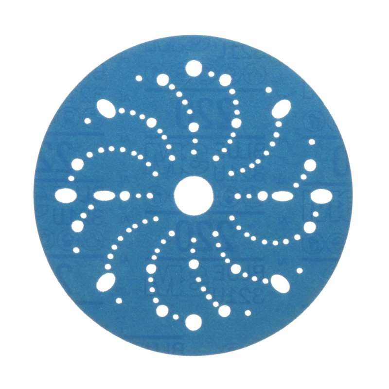 The 3M™ Hookit™ Blue Abrasive Disc 321U delivers best-in-class performance at every stage of paint prep and coatings removal. Premium aluminum oxide mineral abrasive is blended with ceramic grain for a full range of sanding applications. The multi-hole discs feature a specially-designed pattern that reduces loading, extends disc life and aligns with most backup pads. Hookit™ attachment makes disc changes easy. Best-in-Class Performance in Every Grade Part of a full line of 3M™ Blue Abrasives, the 3M™ Hookit™ Blue Abrasive Disc is engineered for best-in-class cut, life and efficiency across your entire shop. The disc features a tough ceramic blended with premium aluminum oxide mineral for just the right balance. 3M™ Blue Abrasives deliver consistently excellent results in a minimum amount of time, on jobs ranging from aggressive paint removal and fresh filler sanding to blend preparation and sanding primer. Discs are available in a wide range of sizes and grades. Dust Extraction Features Enhance Performance and Disc Life The multi-hole pattern on this disc is specially designed to capture dust and keep it away from the abrasive surface. This specially-designed hole pattern reduces loading and extracts dust more efficiently compared to standard 6- or 7-hole disc configurations. It includes alignment guides across the disc, making it fast and easy to align with nearly any backup pad. The mineral blend on the 3M™ Hookit™ Blue Abrasive Disc is bonded using upgraded resins for enhanced durability. An anti-loading coating helps keep dust from gathering between the abrasive grains for a faster cut and for consistent performance throughout the life of the disc. The Hookit™ Attachment System The Hookit™ attachment system has a hook-and-loop feature which makes disc attachment, removal, and re-attachment clean and easy. It also facilitates use and re-use of the disc for maximum product life. Hookit™ discs have a brushed nylon loop backing of the type most commonly used in everyday hook-and-loop applications. 3M™ Hookit™ disc pads (sold separately) feature hooks which grip the brushed nylon loop backing. it's simple: just attach the disc and start sanding. The disc removes just as cleanly and easily. The Hookit™ system is designed for work spaces and applications where adhesive backed discs may become contaminated by dust, dirt, or debris. Better Science for Better Sanding from 3M 3M™ Blue Abrasives family is designed as a cost-effective, high-performance upgrade for any sanding application in body repair and paint preparation. From its balanced, engineered mineral blend to its multi-hole pattern for dust extraction, the 3M™ Hookit™ Blue Abrasive Disc is another way that 3M applies science to deliver best-in-class performance for professionals in paint preparation and auto repair.