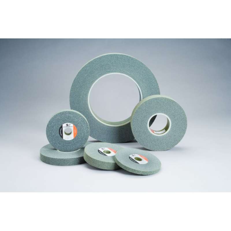 The Standard Abrasives™ Light Deburring Wheel finishes and deburrs parts with critical tolerances and may be used on automated equipment, straight shaft stationary and portable tools as well as feed-through machines. Choosing High vs. Low Densities Standard Abrasives™ Light Deburring Wheel utilizes a fine grade silicon carbide mineral. These wheels vary in density, ranging from 6 to 8. Higher density wheels tend to be more durable and have a longer service life. Lower density wheels indicate softer feel. This lower density enables the wheel to be more flexible and conform to the substrate. Light deburring wheels tend to be less aggressive and finish finer than other convolute wheels. Smear-Resistant for A Brighter Finish These wheels are convolute wheels, meaning they must be run in one direction as indicated by the arrow on the side of the wheel. The abrasive web, made with resin and silicon carbide mineral, is wound around the wheel's core. The silicon carbide mineral is bonded with a smear-resistant resin that will not smudge or stain the substrate. These attributes contribute to a cleaner, brighter finish on the substrate. The Light Deburring Wheel is a great starting point for your light blending, polishing, and deburring applications. Consider it a trusted tool for achieving a fine finish on the workpiece.