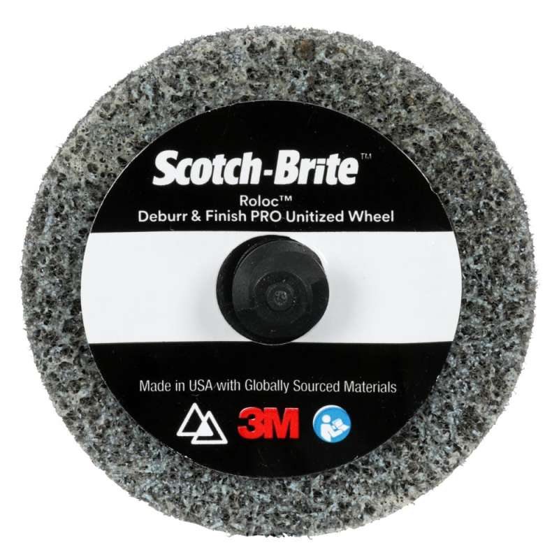 Scotch-Brite™ Roloc™ Deburr and Finish PRO Unitized Wheel is a new wheel designed to make a variety of metalworking applications easier and more efficient for industrial professionals. Typically, abrasives excel in one area: deburring, finishing or blending. This multi-purpose wheel is unique, because it’s engineered to do all three. Useful in Many Industries Scotch-Brite™ Roloc™ Deburr and Finish PRO Unitized Wheel spans many industries, including oil and gas, aerospace, automotive and metal fabrication. It deburrs, blends and finishes on a variety of workpieces: Threaded pipes and tubular goods Rotors, shrouds, turbine buckets and ducting Gears, sheet metal and engine components Machined and stamped parts The Benefits of 3M Ceramic Precision-Shaped Grain and Scotch Brite™ Scotch-Brite™ Roloc™ Deburr and Finish PRO Unitized Wheel has all the benefits operators have come to expect from Scotch-Brite™ abrasives, including load resistance and responsive open web. What sets this wheel apart from other Scotch Brite™ abrasives is 3M precision-shaped grain. The proprietary mineral – interwoven throughout the abrasive – is engineered for hardness and strength. The sharp-cutting mineral is counteracted by soft, buoyant nylon fibers that respond to surface irregularities and contours. Gaps between fibers allow debris to escape and help minimize loading. Together, the web and mineral combine to aggressively tackle the substrate without sacrificing predictable results. This wheel comes with the added benefit of a Roloc™ attachment. Operators can quickly and swiftly attach the wheel to a Roloc™ backup pad (sold separately) that connects to the power tool. Altogether, Roloc™ attachment systems help enhance productivity by minimizing the time it takes to set up wheel and tool connections. Versatile Performance from Factory to Field Unitized wheels differ from convolute wheels, because they feature a layered construction as opposed to being wound around a core: the open web is cured and compressed for added strength and durability. The unique production method makes unitized wheels a good match for edges and contours. This wheel is recommended for use with a 3M™ Disc Sander (sold separately) and 3M™ Roloc™ + Holder (sold separately). Scotch-Brite™ Deburr & Finish Pro Unitized Wheels are ideal for maintenance operations. These hard-working, high-performance products last through dirt, corrosion and other contaminants while reducing the chance of changing part geometry — helping operators get the job done faster.