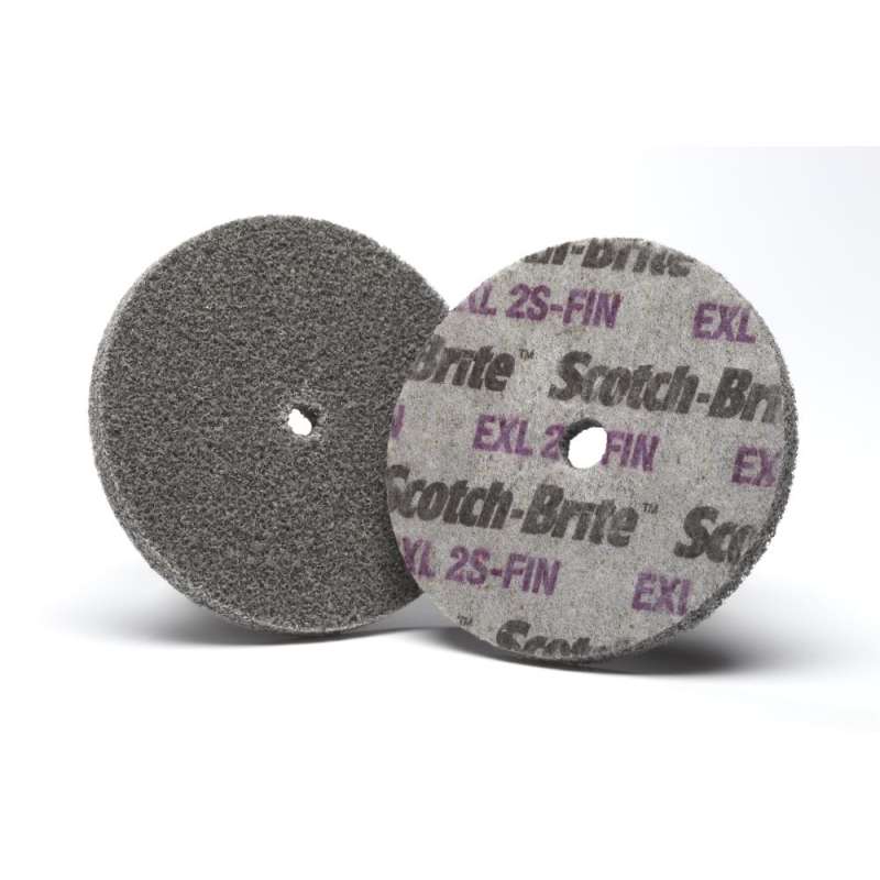 Scotch-Brite™ EXL Unitized Wheels feature a soft, conformable consistency that effectively smooths, deburrs and finishes the edges of metal alloys, as well as many plastics and composites. There are a variety of densities and grades starting from a very soft 2 density for applications requiring conformability to a hard, aggressive 8 density for maximum cut and durability. Consistent Performance on a Variety of Substrates Scotch-Brite™ EXL Unitized Wheel gives a clean edge without smearing, reducing the need for additional clean up and preparation. Designed for optimal performance on a die grinder, the EXL Unitized Wheel minimizes heat buildup during operation, making it ideal for use on heat sensitive materials. Scotch-Brite™ EXL Unitized Wheel is filled with abrasive minerals to quickly smooth edges of metal, plastic and composites. It is available with aluminum oxide in fine, medium, coarse and extra coarse grades, and silicon carbide in very fine and fine grades. Ideal for Robotic Deburring With a wide range of conformability options and high consistency, long-lasting Scotch-Brite™ industrial abrasives are a great option for robotic deburring. Scotch-Brite™ EXL Unitized Wheel quickly removes burrs and sharp edges in end-of-arm tooling operations, delivering consistent performance through the full life of the abrasive. Scotch-Brite™ offers unique surface conditioning products with abrasives incorporated into nonwoven nylon fibers. Combining abrasives with the fibers creates an abrasive system that delivers consistent results over the life of the product. The open-web material is load resistant and keeps the abrasive minerals cutting at high performance by limiting clogging of the nylon fibers.