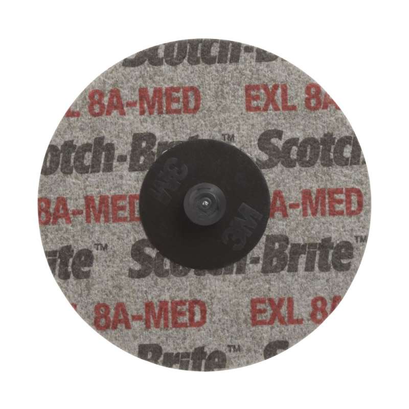 Scotch-Brite™ Roloc™ EXL Unitized Wheel is strong and effective for edge deburring and finishing. This wheel performs well in a variety of metal working applications and machined parts where close tolerances are important. Manufactured with compressed, non-woven fiber construction and uniform grain distribution, the EXL Unitized Wheel produces consistent, professional results for weld polishing, deburring aircraft parts, or blending and finishing on a variety of metals, plastics and composites.. EXL material in the higher densities is chosen to be extremely tough, delivering aggressive cutting power for effective deburring of edges and corners without damaging the part. The lower densities are soft and conformable and work well for finishing contoured surfaces. This disc also features the 3M™ Roloc™ Quick Release System for quick and easy disc changes. Roloc discs allow use of both the edge and surface of the wheel without interruption of mounting hardware. Available grades: Fine, Medium, and Course. . 3M™ Roloc™ quick change discs are smaller discs that are designed to be easily and quickly attach onto a Roloc™ disc pad (sold separately) so that you can conveniently change discs to accommodate different tasks or multi-step finishing processes. The Roloc system provides a secure attachment even for heavy-duty applications, and the variety of available 3M Roloc discs allows swapping from one application to the next in seconds.. Scotch-Brite™ surface conditioning products are developed with abrasives incorporated into non-woven nylon or synthetic fibers. Combining abrasives with the fibers creates an abrasive system that delivers consistent results for the life of the product. The open-web material runs cool, reducing the risk of part discoloration and warping. The fibers are load resistant and keep the abrasive minerals cutting at high performance by limiting clogging of the fibers, which also extends the life of the disc.