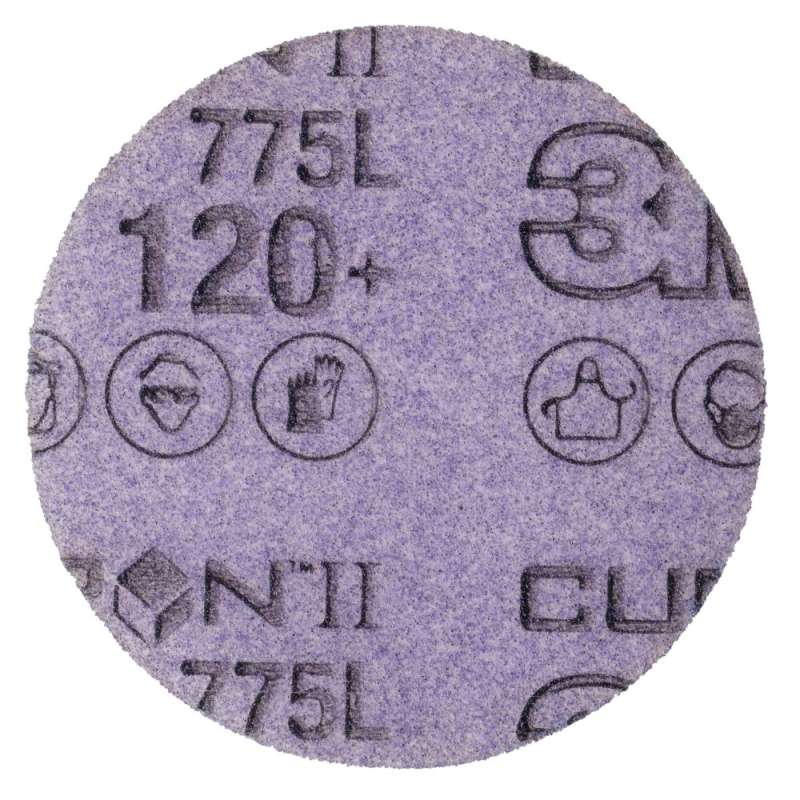 3M™ Cubitron™ II Stikit™ Film Disc 775L features 3M Precision Shaped Ceramic Grain, a revolutionary advancement in abrasive technology. The triangular shaped ceramic mineral is designed to slice through the substrate, rather than gouging or “plowing” like conventional abrasives, resulting in a disc that cuts up to 2x as fast and lasts up to 6x as long as conventional abrasives. These discs are ideal for a broad range of applications focused primarily on stock removal, and are effective on a wide variety of substrates, including metals, composites, gelcoat, and whitewood. The film backing offers greater tear resistance than paper discs, for additional durability and edge retention. For best results, pair with 3M™ Elite Random Orbital Sanders. 3M™ Stikit™ system eliminates the time-consuming task of applying adhesive to the disc backing. These high-quality, coated abrasive products come ready to use with a pressure sensitive adhesive coating on the backside so that attaching them to a disc pad is as simple as pressing on a sticker. And because the adhesive is pressure sensitive, the disc can be peeled off of the disc pad just as easily, leaving a clean surface for the next disc. A Stikit™ disc must be pressed onto a Stikit™ backup pad (also called a disc pad and sold separately) that is attached to a disc sander, random orbital sander, or stationary disc sander.