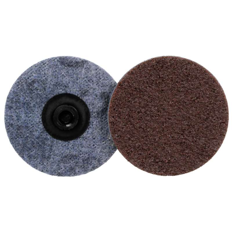 Scotch-Brite™ Roloc™ SE Surface Conditioning Disc combines a coarse, non-woven disc to perform heavy-duty deburring and finishing with the efficiency of the 3M™ Roloc™ quick-change attachment system. Heavy-duty non-woven fiber construction conforms well to help preserve irregular or contoured surfaces and Roloc™ backing supports the disc to allow for aggressive cutting. 3M™ Scotch-Brite™ Roloc™ SE Surface Conditioning Disc provides an extra cut and long life, while heavy duty web construction offers a resilient disc edge, helping to reduce tearing when pushed against corners and welds. These coarse discs are ideal for heavy duty blending, grinding, refining and deburring. The aluminum oxide material provides the discs with a high cut rate, and is suitable for use on a variety of substrates in professional metalwork applications, including ferrous alloys. These small, quick change discs can be easily attached to a Roloc™ disc pad (sold separately). Discs’ grades are color coded for easy identification. Complete jobs and multi step finishing processes efficiently with 3M™ Scotch-Brite™ Roloc™ SE Surface Conditioning Disc.