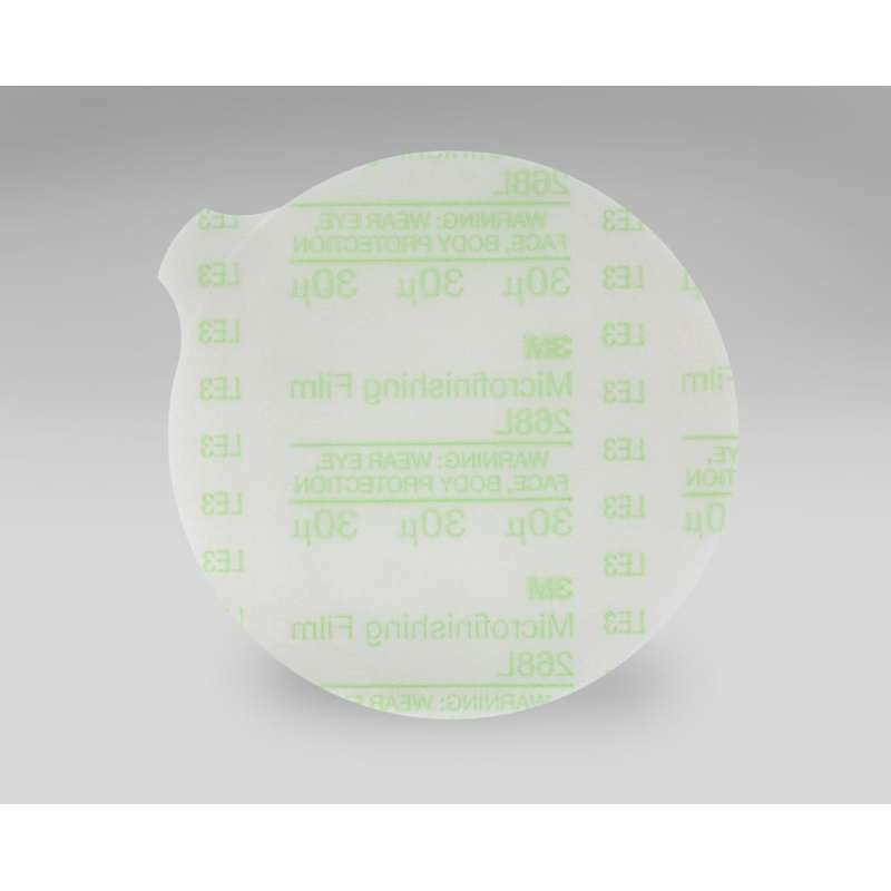 3M™ Hookit™ Microfinishing Film Disc 468L is ideal for sanding and finishing on plastics, wood, paint, e-coat composites, and metals. Made for Sanding and Finishing 3M designed the 3M™ Hookit™ Microfinishing Film Disc 468L with a hook and loop attachment system for sanding and finishing. It is intended to speed up disc swapping during multi-step sequences, thereby increasing productivity and throughput. 3M™ Hookit™ Attachment 3M offers a complete line of hook-and-loop style 3M™ Hookit™ discs for work spaces where adhesive backed discs may become contaminated by dust or dirt. Hookit™ sanding discs conveniently attach to a hook-and-loop backup disc pad (sold separately), can be removed cleanly and easily, and can be re-used again and again for the extent of the abrasive life. The backup pad typically attaches to a tool like a random orbital sander (also sold separately). Silicon Carbide and Polyester Backing The 3M™ Hookit™ Microfinishing Film Disc 468L is engineered using micron-graded silicon carbide, which is a popular choice among industrial professionals because of its fast cut and smooth finish. Silicon carbide is a mineral that is very sharp and commonly used for low-pressure applications, such as sanding and finishing during paint prep. While it breaks down faster than aluminum oxide, this mineral produces a brighter finish and offers greater tear-resistance than comparable paper products, making it ideal for high-production environments.