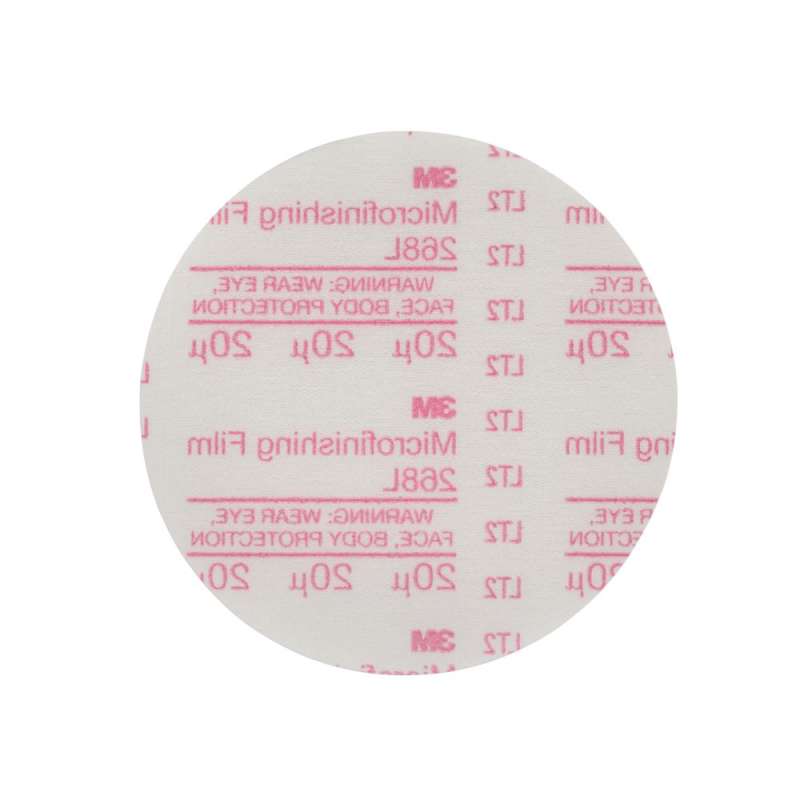 3M™ Hookit™ Microfinishing Film Disc 268L is a fast-cutting abrasive for precise, uniform, close-tolerance finishes. An aluminum oxide mineral is resin-bonded to a 3 MIL, high-strength polyester film backing for durability. This disc is ideal for defect repair and leveling, paint prep and final finishing. Achieve Close-Tolerance Finishes 3M™ Hookit™ Microfinishing Film Disc 268L is designed to enable operators to achieve precise, controlled, close-tolerance finishes on surfaces from metals to plastics to wood. This product features precision, micron-graded aluminum oxide, resin-bonded to a high-strength, resilient polyester film backing. Aluminum oxide is desirable among industrial professionals for its fast cut-rate and long life. Aluminum oxide is suitable for a wide variety of materials in both woodworking and metalworking, including ferrous alloys. It cuts aggressively without significantly altering part geometry, which is great for applications like finishing and paint prep – when you want to maintain the part's original shape. Available in a wide range of grades, these discs are color coded for easy selection of grit and reduced risk of error. Run Wet or Dry These film-backed discs are water resistant, so they can be run wet or dry. Coolant generally extends abrasive life, increases cut rate and prevents loading. The high- strength, film backing maintains its strength and flexibility when paper will degrade when run wet, which makes it an excellent choice for use on a variety of woods and automotive applications. Focus on the Task, Not the Tool with Hookit™ Attachment Microfinishing Film 268L utilizes 3M™ Hookit™ hook-and-loop attachment system which allows the operator to focus more on the task and less on tool. 3M™ Hookit™ products are manufactured with loop material that attaches to a backup pad (sold separately) where tiny hooks firmly engage the loops. Attachment is quick, easy and secure. Sanding, finishing, and surface conditioning products with the hook-and-loop attachment and removal system are efficient for working through multi-step finishing processes and are ideal for environments where dust and debris is common. Abrasive products with a Hookit™ attachment can be used again and again for the life of the abrasive, unlike pressure-sensitive adhesive attachments.