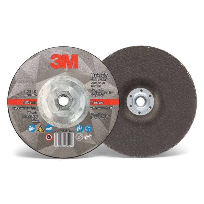 3M™ Cut & Grind Wheels are engineered to help you get more work done for your dollar. These versatile wheels serve as both a depressed center grinding wheel and a cut-off wheel, allowing you to seamlessly switch from cutting applications like back gouging to grinding a bevel without taking the time to switch out your wheel. Value and Versatility Versatile 3M™ Cut & Grind Wheels are designed for use as both a depressed center grinding wheel and a cut-off wheel to help you finish your jobs on time and on budget. In multi-step metalworking processes, these wheels save you the time and hassle of swapping out the abrasive on your grinder. Seamlessly transition/switch from cutting applications like back gouging to grinding a bevel without wasting time switching from a cut-off wheel to a grinding wheel. Plus, these powerful wheels with 3M Precision-Shaped Grain are competitively priced for incredible value. Powered by 3M Precision-Shaped Grain These cut & grind wheels feature a blend of 3M Precision-Shaped Grain. This innovative ceramic grain continually fractures into super-sharp points and edges that slice cleanly through metal, rather than gouging or plowing as traditional abrasives do. This also helps it to last significantly longer than conventional ceramic grain abrasives while maintaining a high cut-rate over the life of the wheel. Advanced Series Abrasives The 3M™ Cut & Grind Wheel is part of a new class of 3M abrasives designed to deliver an unbeatable combination of performance and value. Powered by the legendary speed and long life of 3M Precision-Shaped Grain, these Advanced Series Abrasives are ideal for a wide range of metal cutting and grinding applications — offering a longer life and faster cut than aluminum oxide, alumina zirconia and other conventional ceramic abrasives. Applications • Cutting • Grinding • Notching • Gouging (back and root pass) • Beveling • Fillet weld grinding