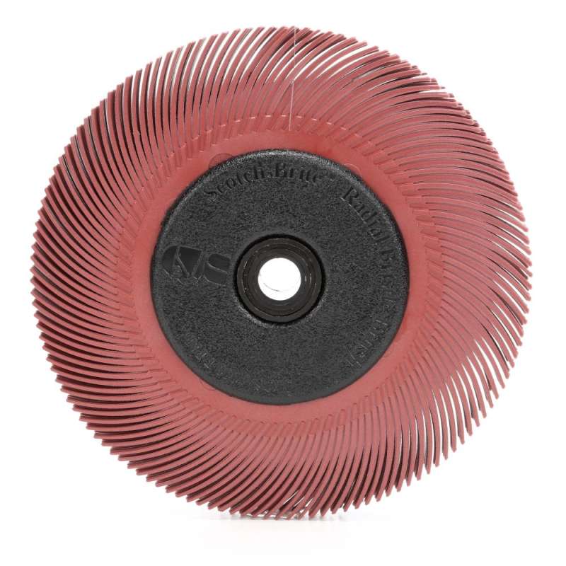 Scotch-Brite™ Radial Bristle Brush, using a proprietary ceramic abrasive grain blended with aluminum oxide and molded, flexible bristles, provides more surface contact than wire brushes and maintains abrasive property throughout the life of the brush. This brush removes paint, stains, adhesives, weld burns, rust, heavy oxides, and surface contaminants. A Good Alternative for Steel Wool Under normal use, the flexible bristles remain safely in place and can achieve the desired finish using light pressure. The Scotch-Brite™ Radial Bristle Disc is designed to last longer than wire and other abrasive discs and works well on aluminum, brass, bronze, carbon steel, cast iron, stainless steel, and other metals. Applications include general industrial, aerospace, automotive, metalworking, transportation, and automotive as well as fine detailing requirements of electronics, jewelry and woodworking industries. Ideal for Robotic Deburring With a wide range of conformability options and high consistency, long-lasting Scotch-Brite™ industrial abrasives are a great option for robotic deburring. Scotch-Brite™ Radial Bristle Brush quickly removes burrs and sharp edges in end-of-arm tooling operations, delivering consistent performance through the full life of the abrasive. The Many Benefits of Ceramic Abrasive Grain Ceramic abrasive grain is a ceramic mineral manufactured using a proprietary process to enhance toughness and hardness of the grain. For increased performance, Scotch-Brite™ Bristle Discs feature aluminum oxide blended with ceramic abrasive grain for one of the hardest, longest-lasting minerals available. Perfect for moderate to heavy stock removal, ceramic abrasives are engineered to cut fast and handle intense heat and stress applications. Ceramic abrasive grain surpasses aluminum oxide abrasives in cut-rate, durability, and makes an excellent choice for industrial grinding and finishing applications.