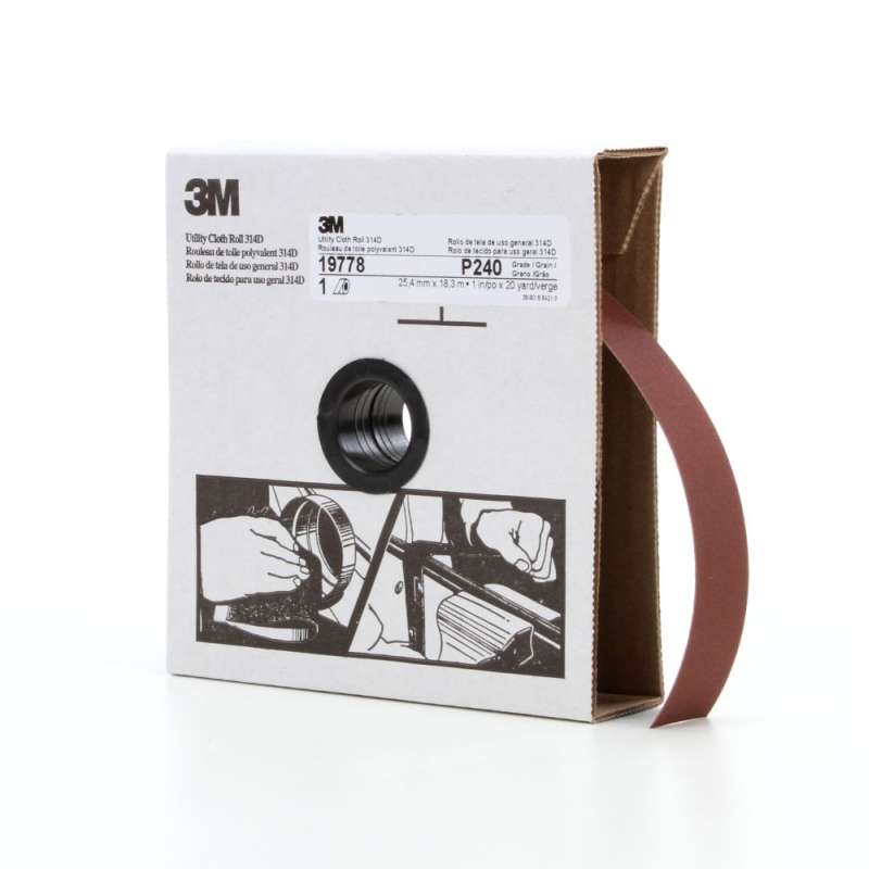 3M™ Utility Cloth Roll 314D provides light-weight cloth sanding strips used for hand sanding in many different applications. Constructed with aluminum oxide abrasive, these utility rolls come in a range of grades for common applications such as deburring, blending and repairing metal finishes, rust or other contaminant removal, and surface preparation for paints and coatings. The desired length of the strip can be torn from the roll for a specific application. Most grades have a light, J-weight cloth backing that provides the flexibility needed to conform to circular edges, angles, or other contours. Rolls in grades P50 or P60 have a slightly stiffer X-weight backing suitable for more coarse sanding applications. Cloth remains durable even when bent or rolled, without tearing or shelling, but strips can be torn by hand when a smaller piece is needed, without compromising the sanding surface. Aluminum oxide is a popular choice among industrial professionals because of its fast cut-rate and long life. This mineral makes a tough, durable abrasive that self-fractures to expose fresh cutting edges, whereas traditional natural abrasives dull more quickly. Aluminum oxide is suitable for a wide variety of materials in both woodworking and metalworking, including ferrous alloys. Aluminum oxide abrasive can be used on ferrous and non-ferrous metals, wood, and plastic.