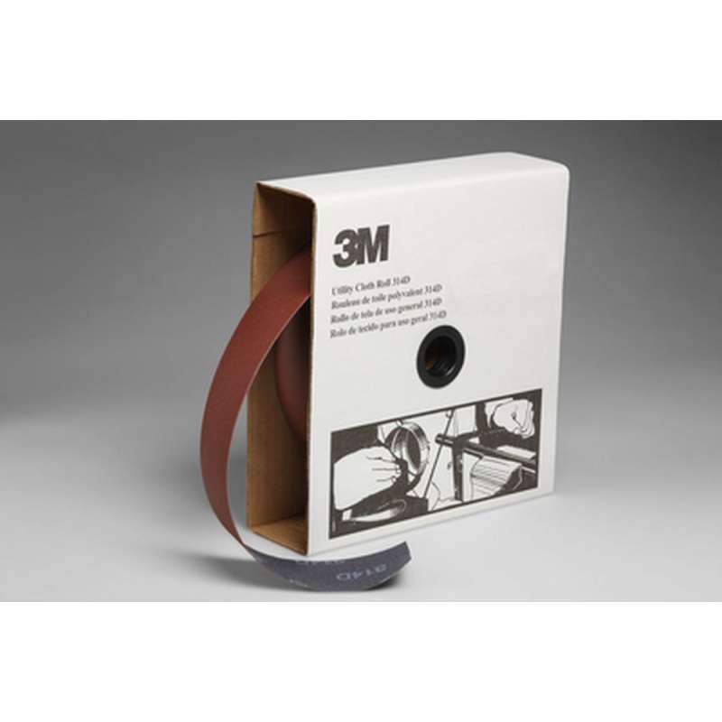3M™ Utility Cloth Roll 314D provides light-weight cloth sanding strips used for hand sanding in many different applications. Constructed with aluminum oxide abrasive, these utility rolls come in a range of grades for common applications such as deburring, blending and repairing metal finishes, rust or other contaminant removal, and surface preparation for paints and coatings. The desired length of the strip can be torn from the roll for a specific application. Most grades have a light, J-weight cloth backing that provides the flexibility needed to conform to circular edges, angles, or other contours. Rolls in grades P50 or P60 have a slightly stiffer X-weight backing suitable for more coarse sanding applications. Cloth remains durable even when bent or rolled, without tearing or shelling, but strips can be torn by hand when a smaller piece is needed, without compromising the sanding surface. Aluminum oxide is a popular choice among industrial professionals because of its fast cut-rate and long life. This mineral makes a tough, durable abrasive that self-fractures to expose fresh cutting edges, whereas traditional natural abrasives dull more quickly. Aluminum oxide is suitable for a wide variety of materials in both woodworking and metalworking, including ferrous alloys. Aluminum oxide abrasive can be used on ferrous and non-ferrous metals, wood, and plastic.