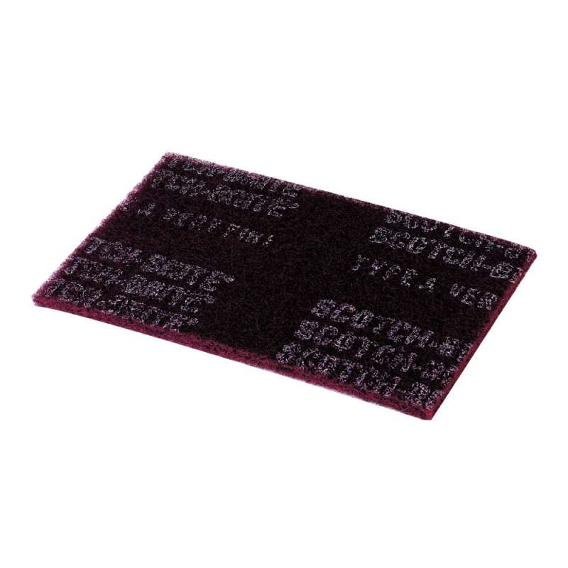 Scotch-Brite™ Clean and Finish Sheet uses a conformable non-woven web and a variety of mineral types to blend, clean, and finish. It also works well for contour finishing and lacquer finishing and polishing. The sheet is flexible, making it effective for getting into hard-to-reach areas to produce a uniform finish. The soft abrasive mineral effectively cleans, blends, and conditions metals, wood, composites, and advanced surfaces and is also effective for paint prep. Applications where Scotch-Brite™ Clean and Finish multi-use sheets are useful include cabinetry, custom woodworking and millwork, furniture, metal fabrication, primary wood and panel processing. Washable and reusable, this non-woven, open-web sheet resists loading to continuously provide consistent conditioning properties throughout the life of the product. Convenient 6 x 9 inch sheet may be used by hand for precise control, with a hand pad block for uniform finishing, or on an in-line sander for large area coverage. Scotch-Brite™ Clean and Finish Sheets are available with silicon carbide, aluminum oxide, or talc abrasive mineral. Silicon carbide is a synthetic mineral that is very sharp and commonly used for low-pressure applications such as paint prep and finishing. Aluminum oxide is a hard, blocky mineral that provides high cut-rate and long life. While silicon carbide breaks down faster than aluminum oxide, it produces a finer finish. Talc is a mild abrasive that can be used achieve a satin finish or with polish to create a high gloss finish in topcoat rubbing applications. Scotch-Brite™ abrasives are unique surface conditioning products with abrasives incorporated into non-woven fiber matrix. Combining abrasives and non-woven material creates an abrasive system that delivers consistent results for the life of the product. The open-web material runs cool and is load resistant, which keeps the abrasive minerals cutting at high performance by limiting clogging of the fibers.