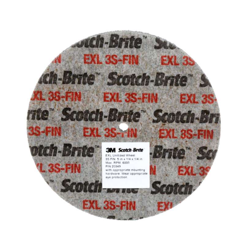 Scotch-Brite™ SST Unitized Wheels offer the same advantages as the SST convolute wheels. Softer and more conformable than many other higher density wheels, the SST is ideal for deburring and finishing demanding alloys like stainless steel and titanium. Unitized wheels can be made in much smaller diameters and widths than convolute wheels for more precise applications. Designed for deburring stainless steel, titanium and other demanding alloys, Scotch-Brite™ SST Unitized Wheels provide uniform and repeatable results in applications requiring narrow widths and/or smaller diameters. Burrs left behind from machining operations like drilling, stamping and punching are easily removed from hard to reach areas, intricate geometries, precision edges and surfaces and high value materials. Scotch-Brite™ SST Unitized Wheels are used extensively in the aerospace industry to deburr and finish aircraft engine components, to finish parts used in medical devices and surgical instruments and for mold and die polishing. Available in three densities with silicon carbide or aluminum oxide abrasive mineral, this unitized version of the SST wheel runs well on bench motors, floor lathes, portable power tools and other smaller equipment. Scotch-Brite™ uses proprietary technology to bind synthetic fibers and abrasive particles to create an abrasive system that delivers consistent results for the life of the product. The open web construction continually exposes fresh abrasive to the work surface, for a consistent finish.