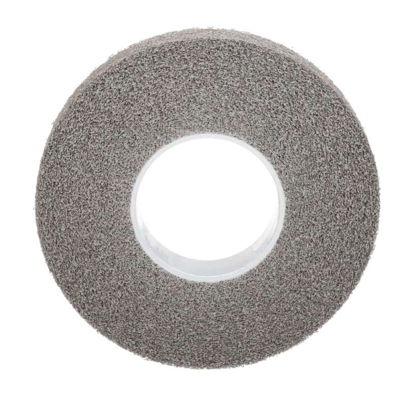 Scotch-Brite™ Multi-Finishing Wheel is a convolute-constructed wheel that provides cleaning and final finishing for stainless steel, aluminum, brass, copper, and other metals. The combination of mineral grades and soft density make the wheel well suited for final finishing applications where a high degree of conformability and less density are needed. The Scotch-Brite™ Multi-Finishing Wheel is ideal for producing #3 or #4 finishes on stainless steel and other metals on curved, contoured, and flat surfaces. The Multi-Finishing Wheel runs cool and resists loading due to its open-web construction, reducing the risk of part discoloration and warping while extending the life of the wheel. The Multi-Finishing Wheel is available in coarse, medium, and fine grade abrasive. The Scotch-Brite™ Multi-Finishing Wheel uses silicon carbide abrasive. Silicon carbide is a synthetic mineral that is very sharp and commonly used for low-pressure applications such as paint prep. While it breaks down faster than aluminum oxide, it produces a superior finish. Scotch-Brite™ industrial abrasives are unique surface conditioning products with abrasives incorporated into non-woven nylon or synthetic fibers. Combining abrasives with the fibers creates an abrasive system that delivers consistent results for the life of the product. It uses a material that runs cool and is load resistant, which keeps the abrasive minerals cutting at high performance by limiting clogging of the fibers.