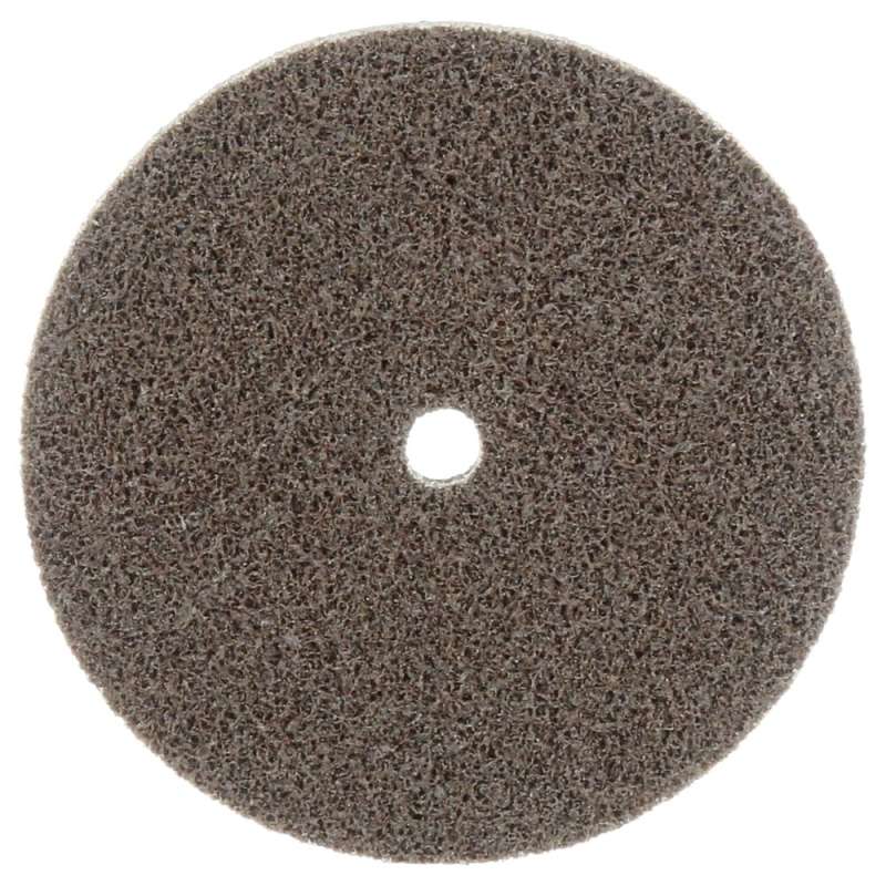 Scotch-Brite™ Cut and Polish Unitized Wheel is a tightly layered, durable, unitized wheel available in medium to hard densities. The wheel works well for aggressive deburring, blending, and finishing on harder metals and for applications where portability is needed. This wheel provides an excellent starting point for jobs requiring the availability of small diameters and narrow widths. Use the Scotch-Brite™ Cut and Polish Unitized Wheel to replace many conventional abrasive products such as rubber bonded wheels and small set-up wheels. The aluminum oxide mineral combined with a tough nylon web is ideally suited for producing uniform results. The tightly layered unitized construction and aggressive properties produce a smooth running, fast cutting wheel that runs cool and resists loading. The Scotch-Brite™ Cut and Polish Unitized Wheel is filled with aluminum oxide abrasive mineral. Aluminum oxide is a popular choice among industrial professionals due to its cut-rate and long life. This mineral is a tough, durable abrasive that self-fractures to expose fresh cutting edges in use, whereas traditional abrasives, such as garnet, quickly wear down with use. Its high cut-rate, hardness, strength, and low heat retention all combine to make aluminum oxide mineral a good choice in grinding applications. Aluminum oxide is suitable on a wide variety of substrates in both woodworking and metalworking, including ferrous alloys. Scotch-Brite™ industrial abrasives are unique surface conditioning products with abrasives incorporated into non-woven nylon or synthetic fibers. Combining abrasives with the fibers creates an abrasive system that delivers consistent results for the life of the product. The open-web material runs cool and is load resistant, which keeps the abrasive minerals cutting at high performance by limiting clogging of the fibers.