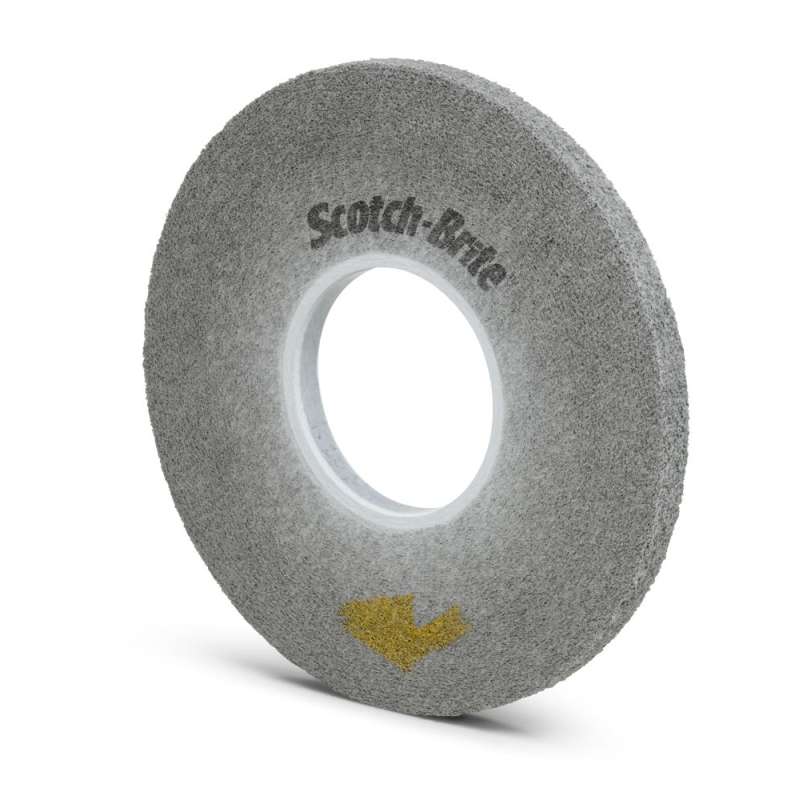 The Scotch-Brite™ EXL PRO Deburring Wheel excels at deburring and is an ideal fit for off-hand operations. It provides 30-50% longer life than the original EXL wheel, without sacrificing a smooth feel and conformability. Designed for optimal operator comfort, the EXL PRO wheel requires less pressure for a faster cut, making this the wheel of choice for premium performance. Exceptional Cut and Longevity, with Less Pressure The hard density Scotch-Brite™ EXL PRO Deburring Wheel quickly deburrs stamped or laser cut parts, finishes after belt sanding, and polishes all types of metals, composites and glass. It not only achieves a super fast cut, but leaves a smooth, clean surface without smearing, reducing your need for additional cleanup and preparation. Convolute construction and clean, uniform wear keep the wheel running smoothly and produce a professional finish with less pressure, minimizing fatigue. Scotch-Brite PRO material runs cool and keeps fresh abrasives continuously exposed, making it a superior choice on heat sensitive substrates. The toughness of the wheel extends its service life to keep your productivity higher and costs lower. Silicon Carbide for a Fine Finish The Scotch-Brite™ EXL PRO Deburring Wheel contains silicon carbide abrasive mineral, a synthetic mineral that is very sharp and commonly used for low-pressure applications such as paint prep. While it breaks down faster than aluminum oxide, it produces a superior finish. The Scotch-Brite™ Advantage Non-woven technology makes Scotch-Brite™ industrial abrasives unique. A combination of fiber strands, resin, and abrasive mineral forms a thick, open web. The spring-like nature of the fibers responds to contours and effectively removes unwanted burrs, soils and contaminants while maintaining the geometry of the workpiece, which in turn reduces rework and boosts productivity. Gaps in the web allow swarf to escape, so debris does not clog the mineral. Fibers in the web continually break down with use to reveal fresh mineral for exceptional consistency, superior cut performance and extremely long service life. Scotch-Brite products may enhance productivity while reducing the need for cleaning chemicals and wire brushes. From aesthetic finishing to weld blending, deburring and more, Scotch-Brite abrasives work fast and deliver consistent results, part after part.