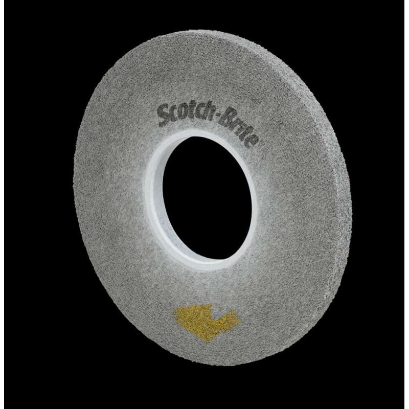 The Scotch-Brite™ EXL PRO Deburring Wheel excels at deburring and is an ideal fit for off-hand operations. It provides 30-50% longer life than the original EXL wheel, without sacrificing a smooth feel and conformability. Designed for optimal operator comfort, the EXL PRO wheel requires less pressure for a faster cut, making this the wheel of choice for premium performance. Exceptional Cut and Longevity, with Less Pressure The hard density Scotch-Brite™ EXL PRO Deburring Wheel quickly deburrs stamped or laser cut parts, finishes after belt sanding, and polishes all types of metals, composites and glass. It not only achieves a super fast cut, but leaves a smooth, clean surface without smearing, reducing your need for additional cleanup and preparation. Convolute construction and clean, uniform wear keep the wheel running smoothly and produce a professional finish with less pressure, minimizing fatigue. Scotch-Brite PRO material runs cool and keeps fresh abrasives continuously exposed, making it a superior choice on heat sensitive substrates. The toughness of the wheel extends its service life to keep your productivity higher and costs lower. Silicon Carbide for a Fine Finish The Scotch-Brite™ EXL PRO Deburring Wheel contains silicon carbide abrasive mineral, a synthetic mineral that is very sharp and commonly used for low-pressure applications such as paint prep. While it breaks down faster than aluminum oxide, it produces a superior finish. The Scotch-Brite™ Advantage Non-woven technology makes Scotch-Brite™ industrial abrasives unique. A combination of fiber strands, resin, and abrasive mineral forms a thick, open web. The spring-like nature of the fibers responds to contours and effectively removes unwanted burrs, soils and contaminants while maintaining the geometry of the workpiece, which in turn reduces rework and boosts productivity. Gaps in the web allow swarf to escape, so debris does not clog the mineral. Fibers in the web continually break down with use to reveal fresh mineral for exceptional consistency, superior cut performance and extremely long service life. Scotch-Brite products may enhance productivity while reducing the need for cleaning chemicals and wire brushes. From aesthetic finishing to weld blending, deburring and more, Scotch-Brite abrasives work fast and deliver consistent results, part after part.