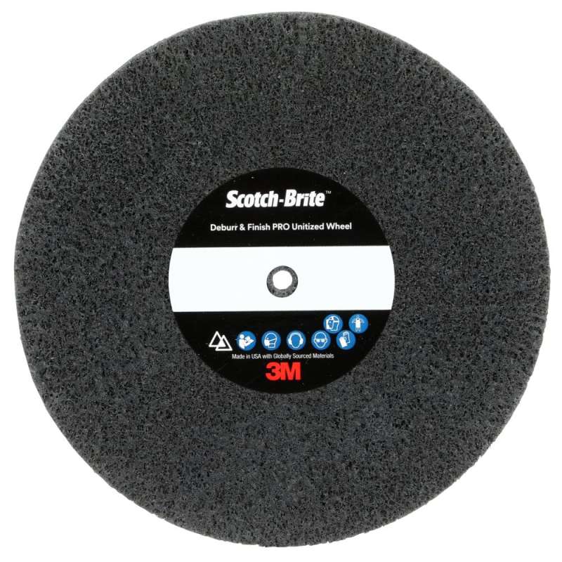 Scotch-Brite™ Deburr and Finish PRO Unitized Wheel is a new wheel designed to make a variety of metalworking applications easier and more efficient for industrial professionals. Typically, abrasives excel in one area: deburring, finishing or blending. This multi-purpose wheel is unique, because it’s engineered to do all three. Useful in Many Industries Scotch-Brite™ Deburr and Finish PRO Unitized Wheel spans many industries, including oil and gas, aerospace, automotive and metal fabrication. It deburrs, blends and finishes on a variety of workpieces: Threaded pipes and tubular goods Rotors, shrouds, turbine buckets and ducting Gears, sheet metal and engine components Machined and stamped parts The Benefits of 3M Ceramic Precision-Shaped Grain and Scotch Brite™ Web Scotch-Brite™ Deburr and Finish PRO Unitized Wheel has all the benefits operators have come to expect from Scotch-Brite™ abrasives, including load resistance and responsive open web. What sets this wheel apart from other Scotch Brite™ abrasives is 3M Precision-Shaped Grain. The proprietary mineral – interwoven throughout the abrasive – is engineered for hardness and strength. The sharp-cutting mineral is counteracted by soft, buoyant nylon fibers that respond to surface irregularities and contours. Gaps between fibers allow debris to escape and help minimize loading. Together, the web and mineral combine to aggressively tackle the substrate without sacrificing predictable results. Ideal for Robotic Deburring With a wide range of conformability options and high consistency, long-lasting Scotch-Brite™ industrial abrasives are a great option for robotic deburring. Scotch-Brite™ Deburr and Finish PRO Unitized Wheel quickly removes burrs and sharp edges in end-of-arm tooling operations, delivering consistent performance through the full life of the abrasive. The Difference Is in the Construction Unitized wheels differ from convolute wheels, because they feature a layered construction as opposed to being wound around a core: the open web is cured and compressed for added strength and durability. The unique production method makes unitized wheels a good match for edges and contours. Moreover, the wheels may be run clockwise or counter-clockwise. 3M recommends using this wheel with the 3M™ Die Grinder (sold separately). For projects that require an extended wheel, 3M™ Extended Die Grinder (sold separately), and the 936 unitized mandrel (sold separately) are good accessories to have on hand. Scotch Brite™ Deburr and Finish PRO Unitized Wheels are ideal for maintenance operations. These hard-working, high-performance products last through dirt, corrosion and other contaminants while reducing the chance of changing part geometry — helping you get the job done faster.