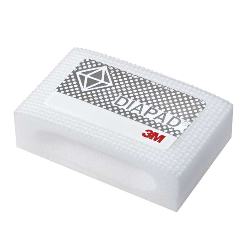 3M™ Flexible Diamond Hand Lap 6200J is a versatile hand-held abrasive that optimizes the sharp cutting action of diamond mineral to grind and finish many materials, including chilled iron, granite, carbide, composites, non-ferrous metals, thermal spray coatings and exotic alloys. Recommended Applications 3M™ Flexible Diamond Hand Lap 6200J is a good match for finishing applications that require aggressive sanding, such as highlighting body-in-white automotive defects. Because diamond mineral cuts fast and sharp, 3M™ Flexible Diamond Hand Lap 6200J minimizes the level of manual pressure needed to get the job done. Comfortable Hand-Held Design 3M™ Flexible Diamond Hand Lap 6200J was ergonomically designed to enhance operator comfort. The contoured foam backing assists with grip, so an even level of pressure may be applied over the surface area. Additionally, because Diamond Hand Lap 6200J is hand-held it can easily get into those stubborn, hard-to-reach areas. Benefits of an Open Dot Pattern The diamond mineral on 3M™ Flexible Diamond Hand Lap 6200J is adhered to a premium flexible backing in an open dot pattern. The open dot pattern allows swarf to escape, so debris will not clog the mineral. This helps sustain a sharp cut and prolong abrasive service life. The premium flexible backing conforms to the substrate and responds to surface irregularities, so you can finish contoured surfaces. 3M™ Flexible Diamond Hand Lap 6200J comes in a variety of grades tailored to meet specific project needs. Metal bond grades are available in 250, 125, 74, 40, 20 and 10 microns. Bigger microns signal bigger minerals, so these grades are good for heavy, fast stock removal. Smaller grades are best for fine finishing. Overall, 3M™ Flexible Diamond Hand Lap 6200J is a great multi-purpose tool for any workshop.