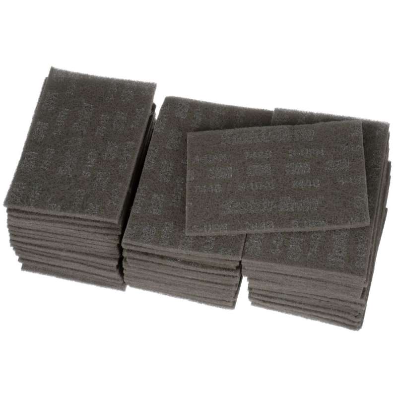Scotch-Brite™ Ultra Fine Hand Pad 7448 combines durability for long life, flexibility for reaching tight areas, and can be used in place of steel wool for conditioning metal surfaces and paint prep. Unlike fine steel wool, Scotch-Brite pads will not shred during use, rust after use, or leave fine metal splinters. The Scotch-Brite™ Ultra Fine Pro Hand Pad 7448 combines durability for long life, flexibility for reaching tight areas, and can be used in place of steel wool for conditioning metal surfaces and paint prep. Unlike fine steel wool, Scotch-Brite pads will not shred during use, rust after use, or leave fine metal splinters. The durable open-web construction of the Scotch-Brite Ultra Fine Hand Pad is load resistant, offers long life and consistent abrasive action for cleaning, finishing and buffing with no need to adjust, turnover, or continue the same project with a new hand pad. The hand pad gets into corners and works detailed surfaces without altering the dimensions of the base material. The Scotch-Brite™ Ultra Fine Hand Pad can be used right out of the box by hand, paired with a hand pad block, or run on an in-line sander for faster completion on larger areas. Recommended applications include scuffing, cleaning and surface preparation.