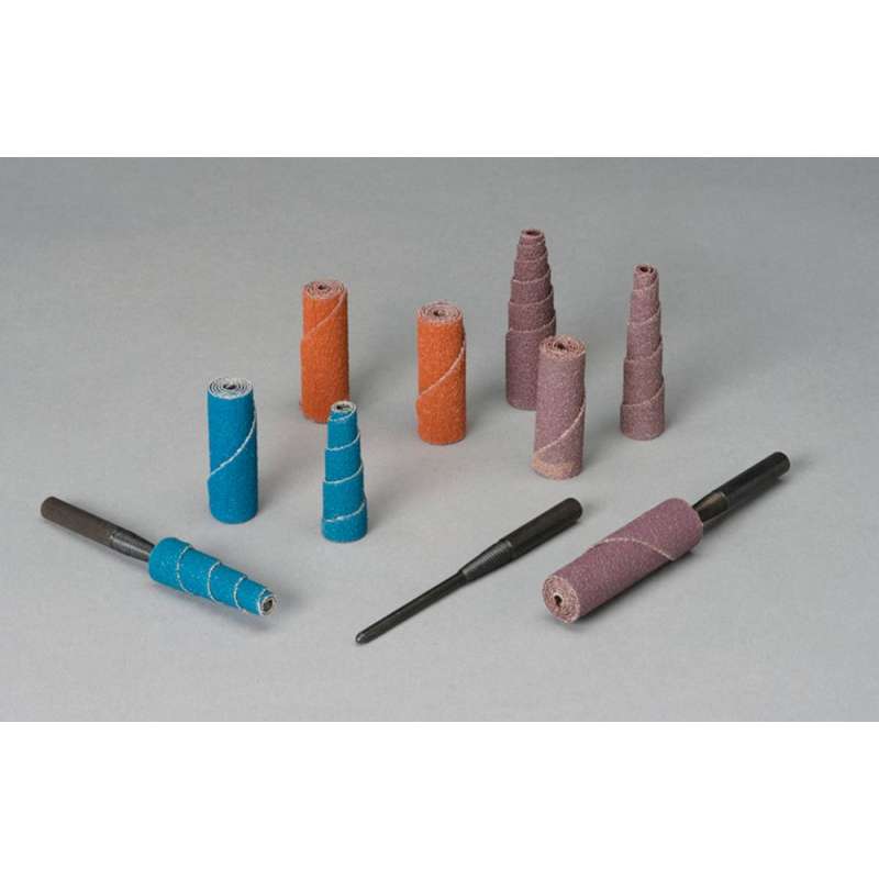 Standard Abrasives™ Aluminum Oxide Cartridge Roll is ideal for fast cutting on irregular contours and other hard-to-reach areas on all ferrous metals. Recommended Applications The multi-layered Standard Abrasives™ Aluminum Oxide Cartridge Roll exposes new abrasive cutting points throughout the life of the roll. Combining an aggressive cut with durability makes it great for polishing, edge breaking and removal of machine tool marks or flash. Its small size and shape enable it to blend, deburr and polish inside holes and diameters or on irregular surfaces and contours.The cartridge roll has an arbor hole to accommodate a mandrel tool attachment (sold separately). This mandrel attaches to a rotary tool such as a die grinder or drill and comes in different sizes to fit a variety of cartridge roll sizes. Together, the mandrel and cartridge roll enable the user to grind or finish hard-to-reach areas of a workpiece, such as angles and curves. The Aluminum Oxide Cartridge Rolls come in a variety of sizes and grades, so it can be tailored to meet unqiue project needs.Grades range from 36 to 400, producing a spectrum of finishes, from coarse to fine.It is made with aluminum oxide mineral, which cuts sharp and is friable – fragmenting under heat and pressure to reveal sharp cutting edges as it abrades the surface.The straight roll design is cylindrical, which helps it roll over irregular contours. Benefits of a Multi-Layer Design The multi-layer, multi-wear design of Standard Abrasives™ Aluminum Oxide Cartridge Roll keeps it cutting sharp and helps it withstand repeated wear. As top layers wear down over time, underlying layers expose fresh mineral, so you get a consistent cut, part after part.Wrapping multiple layers of the abrasive material around into a roll contributes to its sturdiness and durability. A resin bond securely anchors mineral to the cloth backing – also enhancing the abrasive's toughness and strength. The closed-coat construction means mineral grains cover 100 percent of the cloth backing, so you get a smoother, more consistent finish is achieved. Seemingly small, these cartridge rolls conquer big challenges when space gets tight.