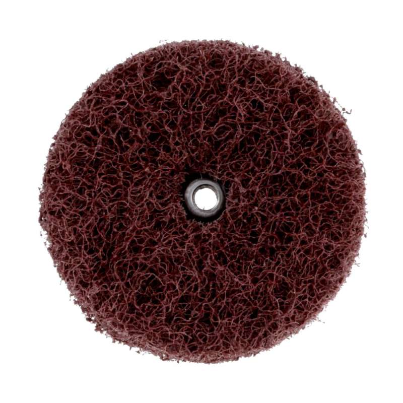 A good starting point for many different light-duty applications, Standard Abrasives™ Buff and Blend Circle Buff GP is a versatile non-woven product designed to lightly blend, clean, deburr and finish a variety of metals and leave a consistent final finish. The threaded eyelet secures the plies together to create a thicker edge and screws onto a mandrel for attachment to a handheld tool. Moderately Aggressive for Lighter-Weight Applications Standard Abrasives™ Buff and Blend Circle Buff GP is a great multi-purpose product for general-duty industrial applications and has the pliability to reach into tubing or other contoured parts. Among the four Standard Abrasives™ Buff and Blend materials, the GP material is the least aggressive. Use it to remove light oxidation, blend minor surface imperfections, clean surfaces prior to coatings, remove small burrs, and perform basic equipment cleanup. Its non-woven construction makes the wheel spongy and responsive so that it conforms to workpiece contours, radii and internal diameters. The Circle Buff can be run wet or dry. When the job requires a tougher product for higher-pressure applications, try using a Standard Abrasives™ Buff and Blend HP or HS Product. 1, 2 or 3-Ply Options Offer a Range of Strength and Flexibility Choose between 1-ply, 2-ply and 3-ply options in a range of diameters from 2-5". The 1-ply circle buff has the greatest flexibility for reaching into tubing and other tight spaces. The 2-ply option provides added stiffness, while the 3-ply circle buff is the best choice when strength is desired over flexibility. The 2" buffs have an 8-32 eyelet, while the 3-5" buffs have a 1/4-20 eyelet. The Many Benefits of Standard Abrasives™ Non-Woven Products Standard Abrasives™ Buff and Blend non-woven products offer many benefits. Varying Buff and Blend materials help distinguish Buff and Blend products from each other, but all Buff and Blend products have an open web. The open web combines abrasive mineral and non-woven nylon fibers with a resin-reinforced bond. The resin bond securely anchors mineral to the fibers, making for a strong, durable abrasive. Gaps between fibers allow swarf to escape, so the abrasive does not get clogged with debris. Minimizing swarf and debris prolongs abrasive service life and keeps minerals cutting sharper for longer. Nylon fibers won't splinter during grinding, offering a good alternative to steel wool. Moreover, as the fibers break down and fresh mineral is exposed, it reduces the likelihood of the disc smearing the surface. Standard Abrasives™ Buff and Blend products deliver a consistent cut and finish - part after part.