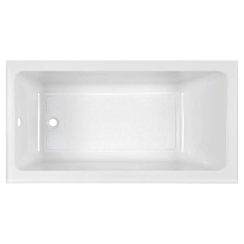 The Studio Above Floor Rough-In Bathtub from American Standard features a sleek, integral apron for compatibility with any bathroom design. Made of lightweight, high-gloss acrylic with durable fiberglass reinforcement, the spacious Studio Bathtub boasts a comfortable lumbar support and textured, slip-resistant surface for added safety. The Studio above-floor rough-in bathtub is designed with enough space to pipe directly under the bathtub without having to relocate the existing drain.