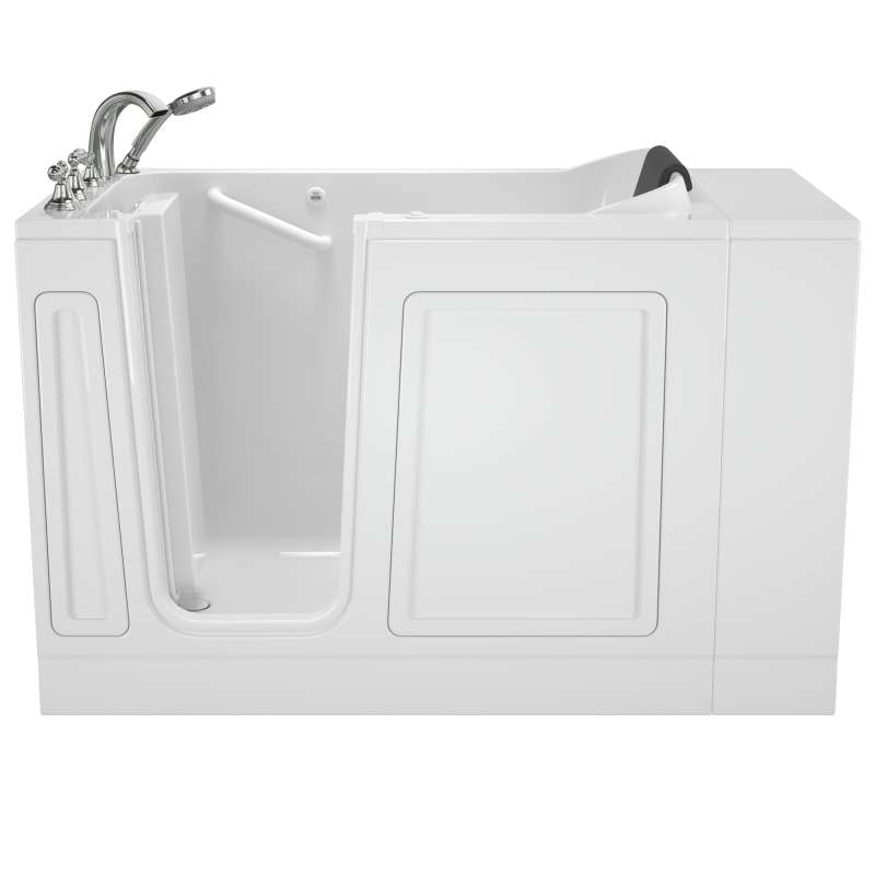 The American Standard 28-in x 48-in Acrylic walk-in bath provides a similar bathing experience to larger models but fits in smaller spaces and uses less water. The included tub extender allows this tub to retrofit in the same space as a standard bathtub. The full sized, contoured door with a low door threshold allows ease of entry and exit. Fully equipped, the 119 Luxury Series offers all the latest in safety and comfort features with the most advanced therapeutic options therapeutic options and backed by a lifetime warranty on the door seal, a 15 year warranty on the tub shell and a 10 year warranty on all other components.