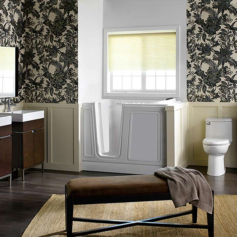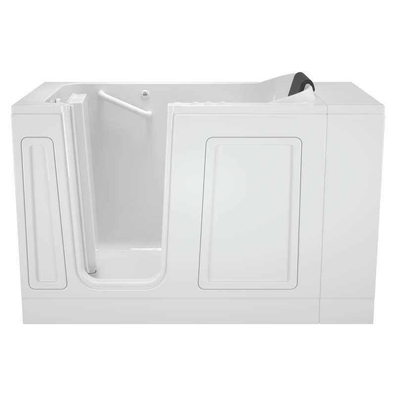 The American Standard 30-in x 51-in Acrylic walk-in bath provides a similar bathing experience to larger models but fits in smaller spaces and uses less water. The included tub extender allows this tub to retrofit in the same space as a standard bathtub. The full sized, contoured door with a low door threshold allows ease of entry and exit. Fully equipped, the 115 Luxury Series offers all the latest in safety and comfort features with the most advanced therapeutic options therapeutic options and backed by a lifetime warranty on the door seal, a 15 year warranty on the tub shell and a 10 year warranty on all other components.