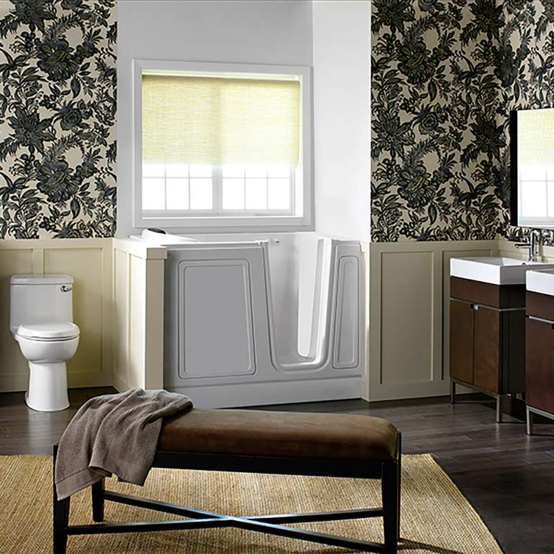 The American Standard 30-in x 51-in Acrylic walk-in bath provides a similar bathing experience to larger models but fits in smaller spaces and uses less water. The included tub extender allows this tub to retrofit in the same space as a standard bathtub. The full sized, contoured door with a low door threshold allows ease of entry and exit. Fully equipped, the 115 Luxury Series offers all the latest in safety and comfort features with the most advanced therapeutic options therapeutic options and backed by a lifetime warranty on the door seal, a 15 year warranty on the tub shell and a 10 year warranty on all other components.