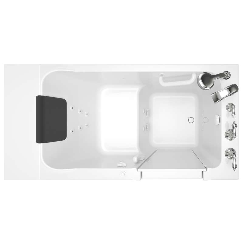 The American Standard 30-in x 51-in Acrylic walk-in bath provides a similar bathing experience to larger models but fits in smaller spaces and uses less water. The included tub extender allows this tub to retrofit in the same space as a standard bathtub. The full sized, contoured door with a low door threshold allows ease of entry and exit. Fully equipped, the 119 Luxury Series offers all the latest in safety and comfort features with the most advanced therapeutic options and backed by a lifetime warranty on the door seal, a 15 year warranty on the tub shell and a 10 year warranty on all other components.