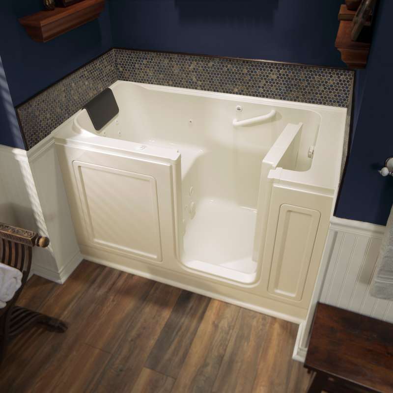 The American Standard 32-in x 60-in Acrylic walk-in bath provides the maximum in therapeutic soaking pleasure with the largest water capacity in our product line. The full sized, contoured door with a low door threshold allows ease of entry and exit. Fully equipped, the 215 Premium Series offers all the latest in safety and comfort features with the most advanced therapeutic options and backed by a lifetime warranty on the door seal, a 15 year warranty on the tub shell and a 10 year warranty on all other components.