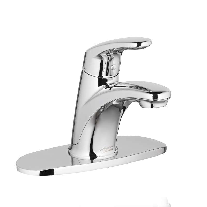 The Colony Pro single-handle bathroom faucet from American Standard provides excellent performance, style, and value. This faucet collection is Watersense certified with a maximum flow rate of 1.2 gallons per minute, and provides comfortable handles for easy use and ADA compliance. Memory position valving allows the user to turn the faucet on and off at a preferred temperature without making any handle adjustments, while an adjustable hot limit safety stop helps to reduce the risk of accidental scalding.
