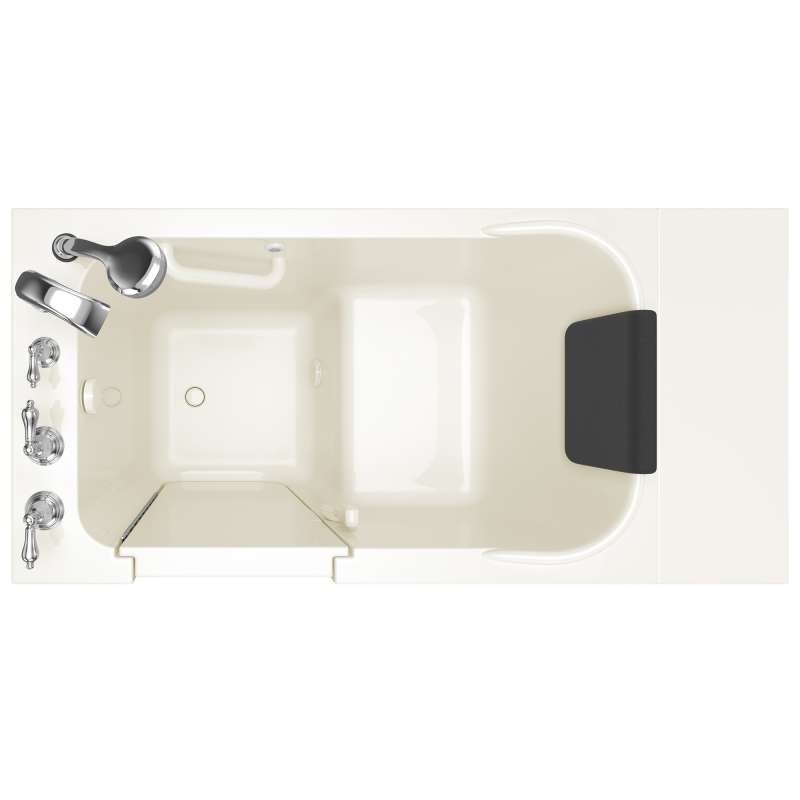 The American Standard 28-in x 48-in Gelcoat walk-in bath provides a similar bathing experience to larger models but fits in smaller spaces and uses less water. The included tub extender allows this tub to retrofit in the same space as a standard bathtub. The full sized, contoured door with a low door threshold allows ease of entry and exit. Fully equipped, the 109 Premium Series offers all the latest in safety and comfort features with the most advanced therapeutic options and backed by a lifetime warranty on the door seal, a 10 year warranty on the tub shell and a 5 year warranty on all other components.