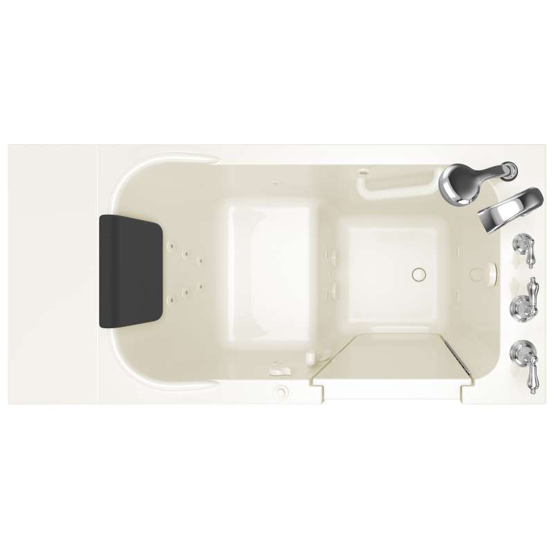 The American Standard 28-in x 48-in Gelcoat walk-in bath provides a similar bathing experience to larger models but fits in smaller spaces and uses less water. The included tub extender allows this tub to retrofit in the same space as a standard bathtub. The full sized, contoured door with a low door threshold allows ease of entry and exit. Fully equipped, the 109 Premium Series offers all the latest in safety and comfort features with the most advanced therapeutic options and backed by a lifetime warranty on the door seal, a 10 year warranty on the tub shell and a 5 year warranty on all other components.