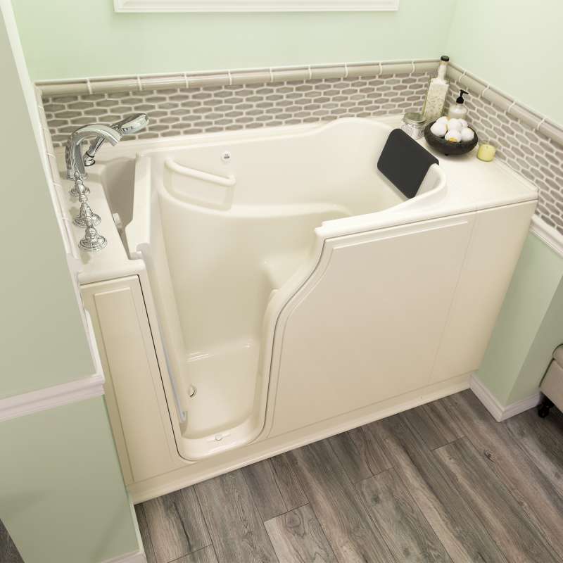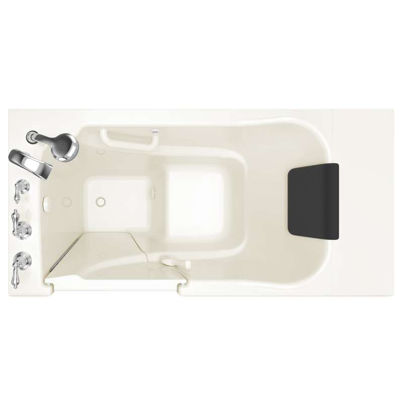 The American Standard 30-in x 52-in Gelcoat walk-in bath provides a similar bathing experience to larger models but fits in smaller spaces and uses less water. The included tub extender allows this tub to retrofit in the same space as a standard bathtub. The full sized, contoured door with a low door threshold allows ease of entry and exit. Fully equipped, the 109 Premium Series offers all the latest in safety and comfort features with the most advanced therapeutic options and backed by a lifetime warranty on the door seal, a 10 year warranty on the tub shell and a 5 year warranty on all other components.