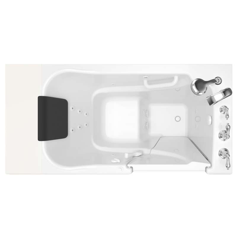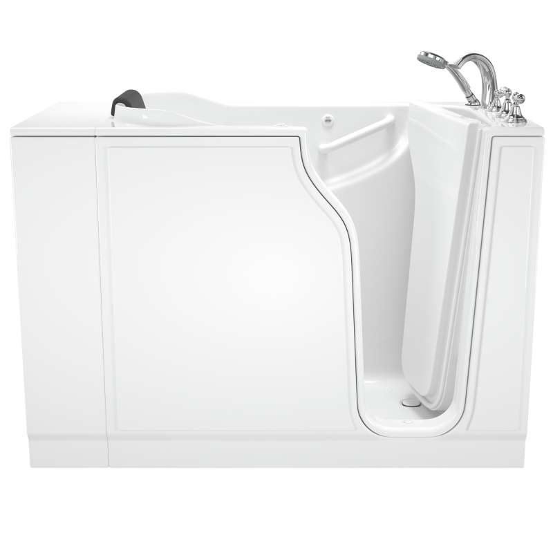 The American Standard 30-in x 52-in Gelcoat walk-in bath provides a similar bathing experience to larger models but fits in smaller spaces and uses less water. The included tub extender allows this tub to retrofit in the same space as a standard bathtub. The full sized, contoured door with a low door threshold allows ease of entry and exit. Fully equipped, the 109 Premium Series offers all the latest in safety and comfort features with the most advanced therapeutic options and backed by a lifetime warranty on the door seal, a 10 year warranty on the tub shell and a 5 year warranty on all other components.