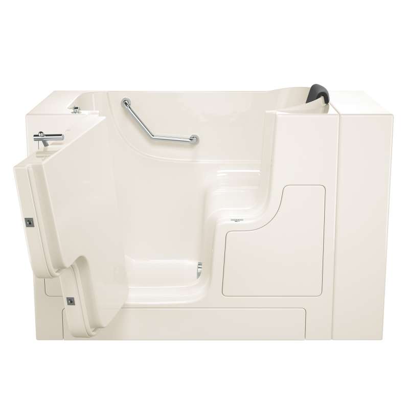 The American Standard 30-in x 52-in Gelcoat walk-in bath provides a similar bathing experience to larger models but fits in smaller spaces and uses less water. The included tub extender allows this tub to retrofit in the same space as a standard bathtub. The full sized, outward opening, contoured door with a low door threshold allows ease of entry and exit. Fully equipped, the 105 Premium Series offers all the latest in safety and comfort features with the most advanced therapeutic options and backed by a lifetime warranty on the door seal, a 10 year warranty on the tub shell and a 5 year warranty on all other components.