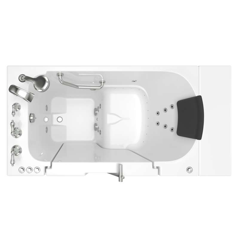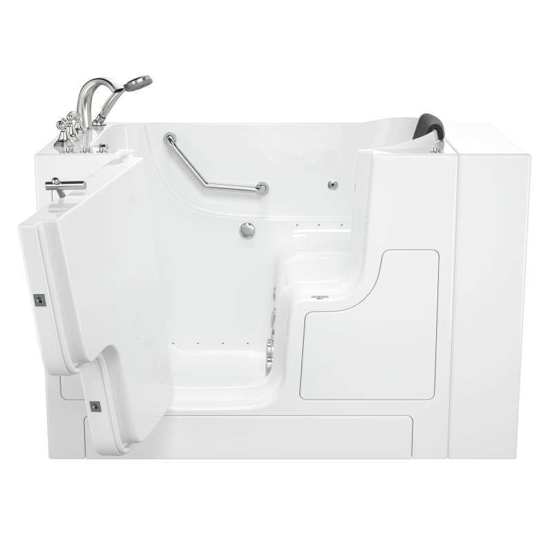 The American Standard 30-in x 52-in Gelcoat walk-in bath provides a similar bathing experience to larger models but fits in smaller spaces and uses less water. The included tub extender allows this tub to retrofit in the same space as a standard bathtub. The full sized, outward opening, contoured door with a low door threshold allows ease of entry and exit. Fully equipped, the 109 Premium Series offers all the latest in safety and comfort features with the most advanced therapeutic options and backed by a lifetime warranty on the door seal, a 10 year warranty on the tub shell and a 5 year warranty on all other components.