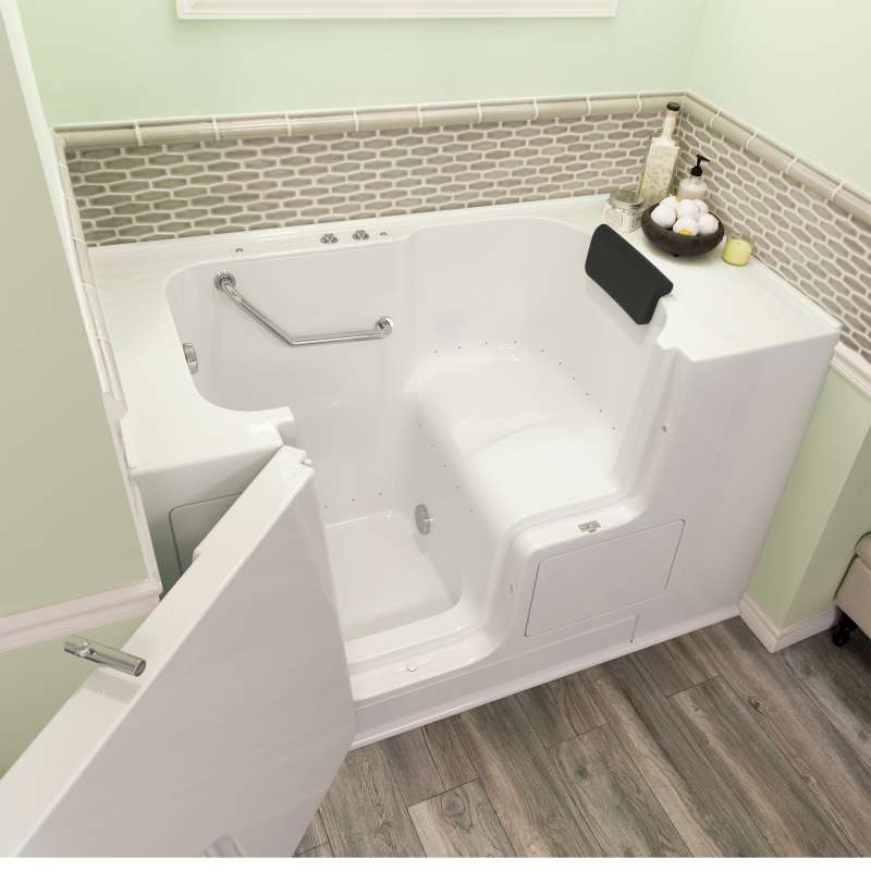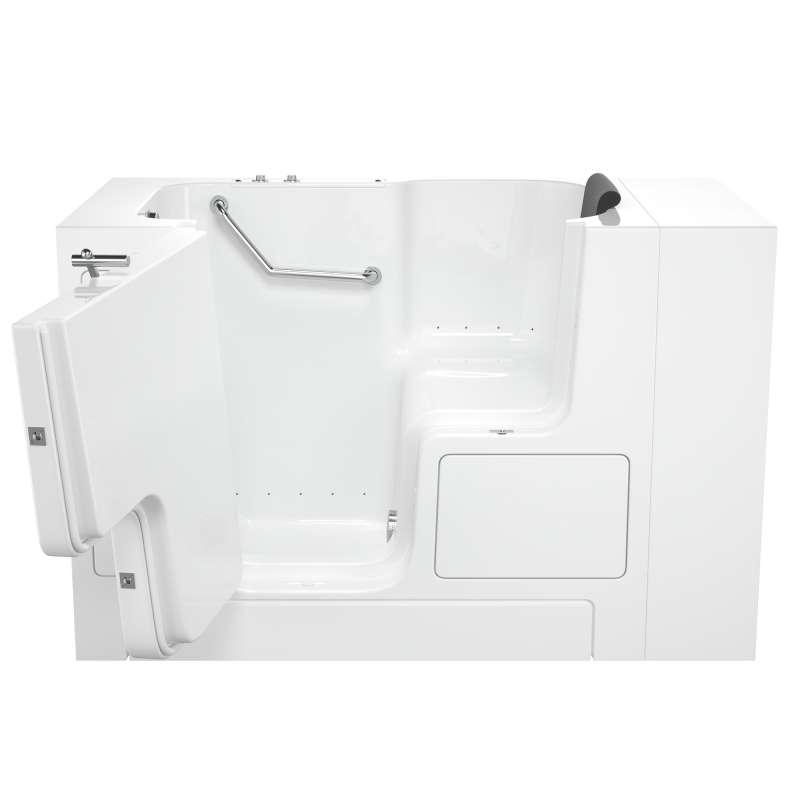 The American Standard 32-in x 52-in Gelcoat walk-in bath provides a similar bathing experience to larger models but fits in smaller spaces and uses less water. The included tub extender allows this tub to retrofit in the same space as a standard bathtub. The full sized, outward opening, contoured door with a low door threshold allows ease of entry and exit. Fully equipped, the 105 Premium Series offers all the latest in safety and comfort features with the most advanced therapeutic options and backed by a lifetime warranty on the door seal, a 10 year warranty on the tub shell and a 5 year warranty on all other components.