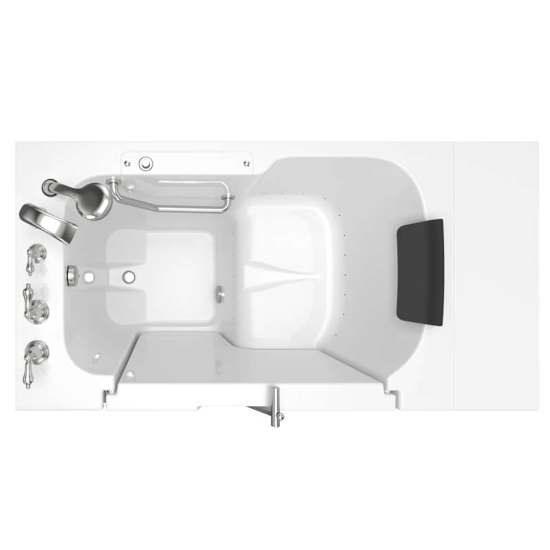 The American Standard 32-in x 52-in Gelcoat walk-in bath provides a similar bathing experience to larger models but fits in smaller spaces and uses less water. The included tub extender allows this tub to retrofit in the same space as a standard bathtub. The full sized, outward opening, contoured door with a low door threshold allows ease of entry and exit. Fully equipped, the 109 Premium Series offers all the latest in safety and comfort features with the most advanced therapeutic options and backed by a lifetime warranty on the door seal, a 10 year warranty on the tub shell and a 5 year warranty on all other components.