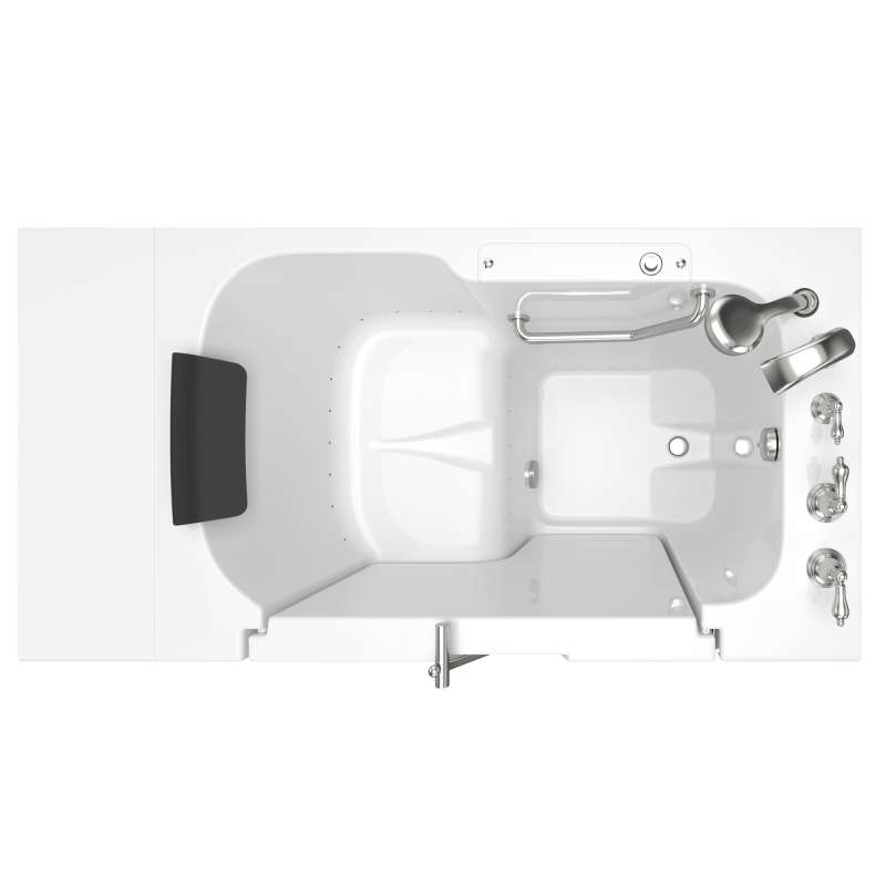 The American Standard 32-in x 52-in Gelcoat walk-in bath provides a similar bathing experience to larger models but fits in smaller spaces and uses less water. The included tub extender allows this tub to retrofit in the same space as a standard bathtub. The full sized, outward opening, contoured door with a low door threshold allows ease of entry and exit. Fully equipped, the 109 Premium Series offers all the latest in safety and comfort features with the most advanced therapeutic options and backed by a lifetime warranty on the door seal, a 10 year warranty on the tub shell and a 5 year warranty on all other components.