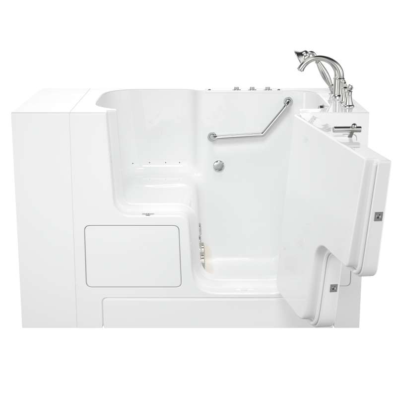 The American Standard 32-in x 52-in Gelcoat walk-in bath provides a similar bathing experience to larger models but fits in smaller spaces and uses less water. The included tub extender allows this tub to retrofit in the same space as a standard bathtub. The full sized, outward opening, contoured door with a low door threshold allows ease of entry and exit. Fully equipped, the 709 Value Series offers all the latest in safety and comfort features with the most advanced therapeutic options and backed by a lifetime warranty on the door seal, a 10 year warranty on the tub shell and a 5 year warranty on all other components.