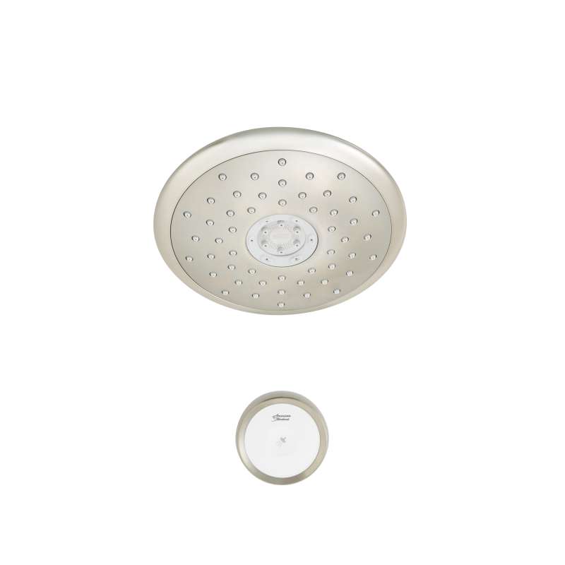 Technology and flexibility bring showering perfection with the Spectra+ eTouch 4-Function shower head from American Standard. This amazing shower head has touch-control that allows you to easily switch between different spray patterns throughout your shower. In addition to the touch control on the shower head itself, a convenient wall-mounted remote can be placed anywhere in your shower, allowing you to change spray patterns at the touch of a button. With four separate spray patterns including Drench, Sensitive, Jet, and Massage, it