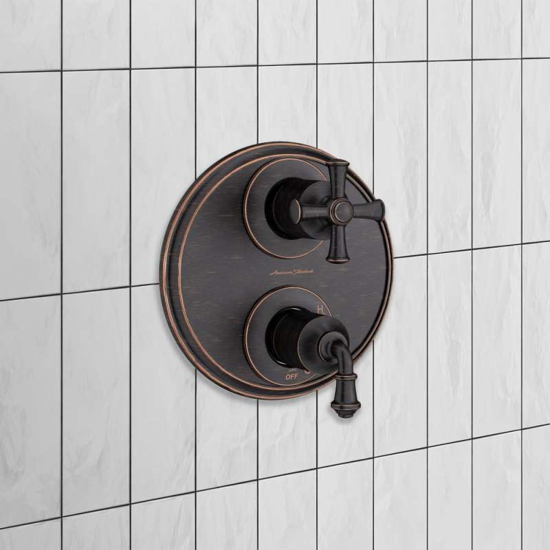 Inspired by the finer points of classic architecture, the Delancey 2-Handle pressure balance Integrated Shower Diverter Trim by American Standard captures the refined elegance of stately columns and sublime details. When paired with the exclusive Flash Rough-in Integrated Shower Diverter Valve, sold separately, you can easily alternate between water outlets. The Delancey Trim coordinates perfectly with the entire Delancey Collection. Requires Flash Rough-in Integrated Shower Diverter Valve RU521 with 2-outlet capability or RU531 with 3-outlet capability.